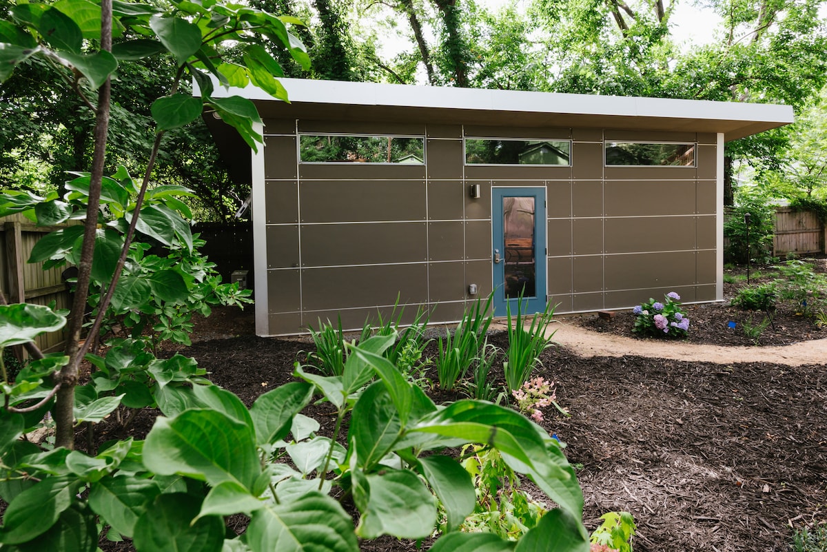 Experience the charm of tiny living in this pet-friendly studio located in my serene yet urban backyard. It offers a peaceful escape while remaining convenient to the attractions & amenities that Durham has to offer. -only a mile east of downtown -1.5 miles to DPAC and Carolina Theatre -ten minutes to both Duke Hospital and Duke Regional -less than 20 minutes to RDU airport Let your dog run around the fully fenced yard while you sit on the deck and sip your coffee!