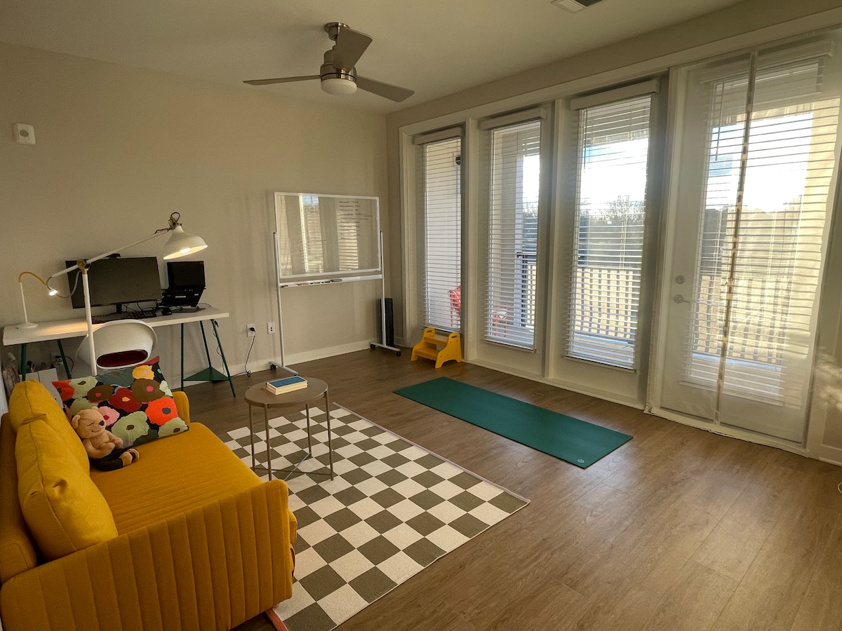 I turned my house into a duplex, by turning a very 70s addition into a private, cozy, and charming space. There's a kitchenette, a dining area, and a sitting area, a bedroom, and a bathroom. The location would be ideal for someone who needs quick access to Duke Regional Hospital (4 minutes away) or downtown (6 minutes), or someone who wants to keep up a running habit (the greenway is nearby). A taqueria, a grocery store, and a coffee shop are within walking distance.