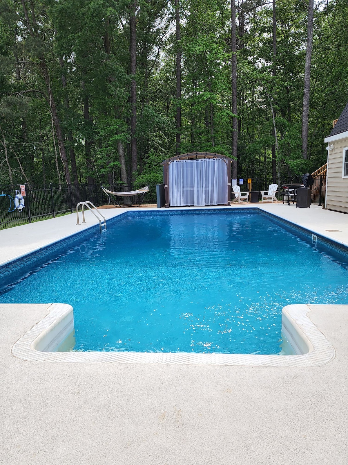 Book now & enjoy the pool, balcony & luxurious hot tub. Open 24hrs, exclusively for guest use. We welcome you to our little piece of paradise, in the country, not far from downtown Durham & Raleigh close to RDU. We offer a well-appointed studio, meticulously cleaned, with a queen Tempurpedic mattress, premium linens, fireplace, full kitchen, washer/dryer, 2 smart TV's & high speed wifi. *Please be aware* Due to allergies & health risks, we are unable to accommodate any animals. Sorry :-(