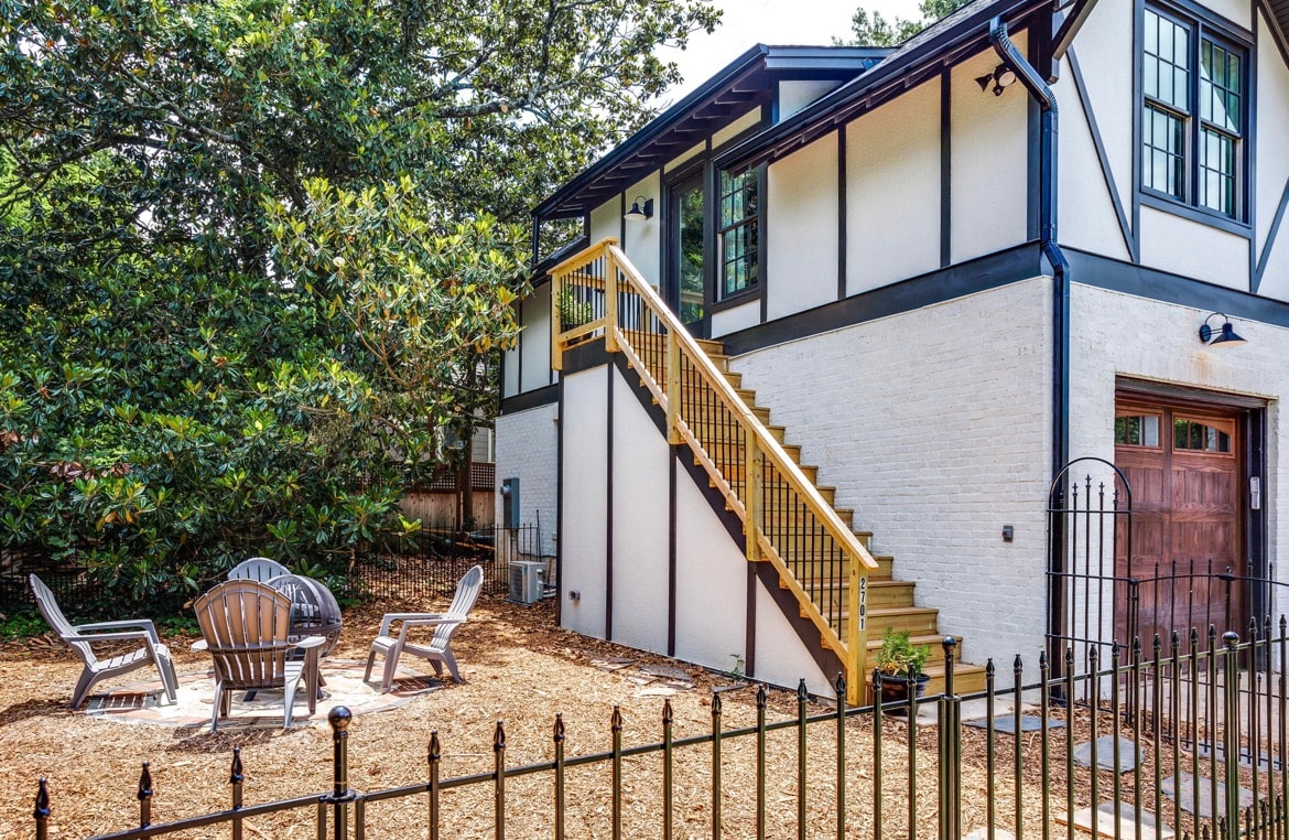 A stylish, modern, and beautiful alley guesthouse that is located just 2 blocks from Duke's East Campus and 4 blocks from downtown Durham. The apartment is located in the historic Trinity Park Neighborhood in Durham. The apartment has a top of the line finish, hardwood floors, appliances, and furniture. The loft area is equipped with a standing desk and monitor and 2 Yoga matts, and it is ideal for working professionals visiting the area. Built: 2023