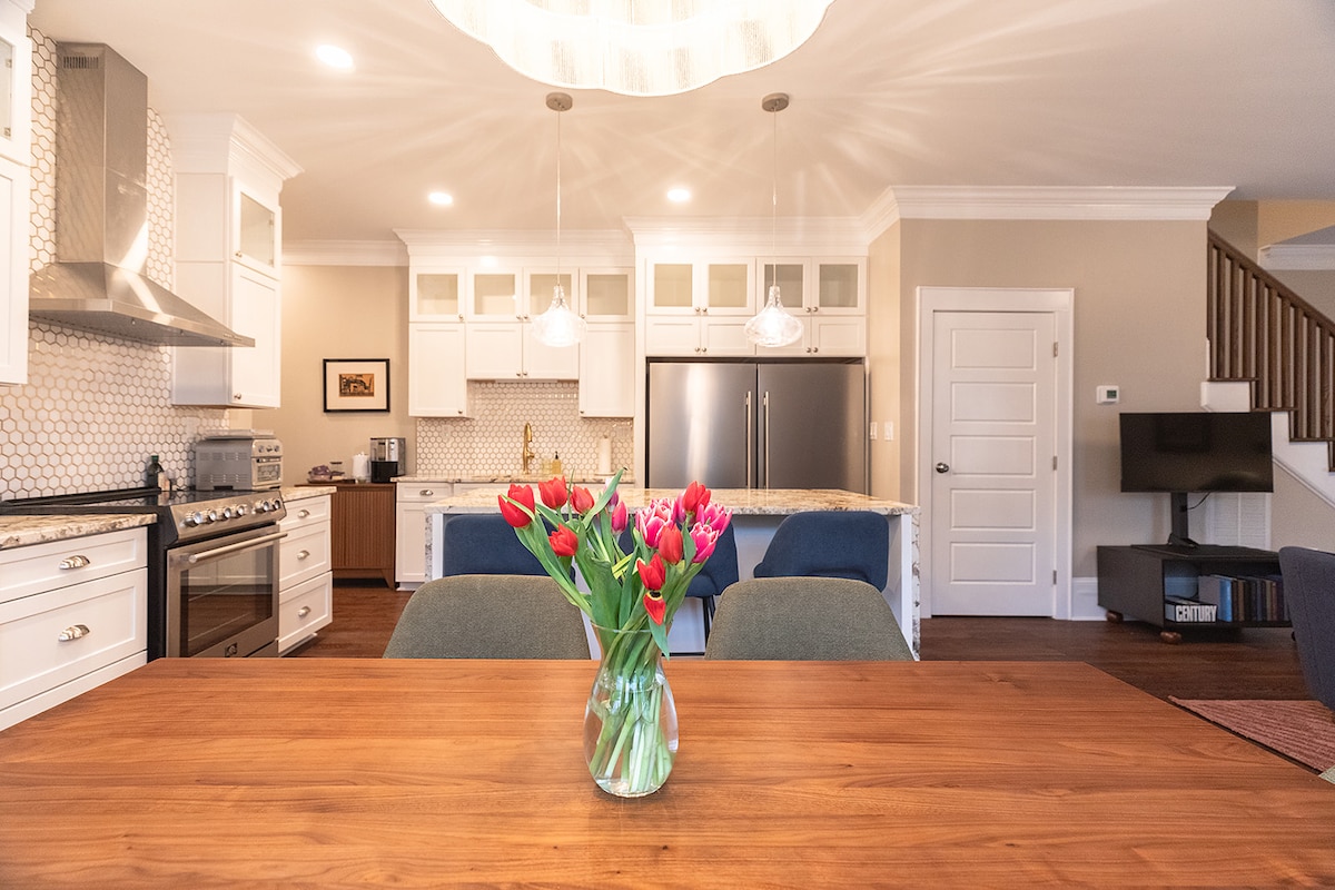 Welcome to Carolina Cottage, nestled in one of Durham's premier post WWII neighborhoods, and extensively renovated by Designer + Builder Alicia Hylton-Daniel. Your experience will be enhanced by the thoughtfully curated spaces for relaxing, renewing and re-connecting. The home is spacious, with common areas to be shared, inside and out, as well as quiet spaces to read, nap, scroll and stream. You'll enjoy a full chef's kitchen and dining room, along with a sunny porch and shaded patio.