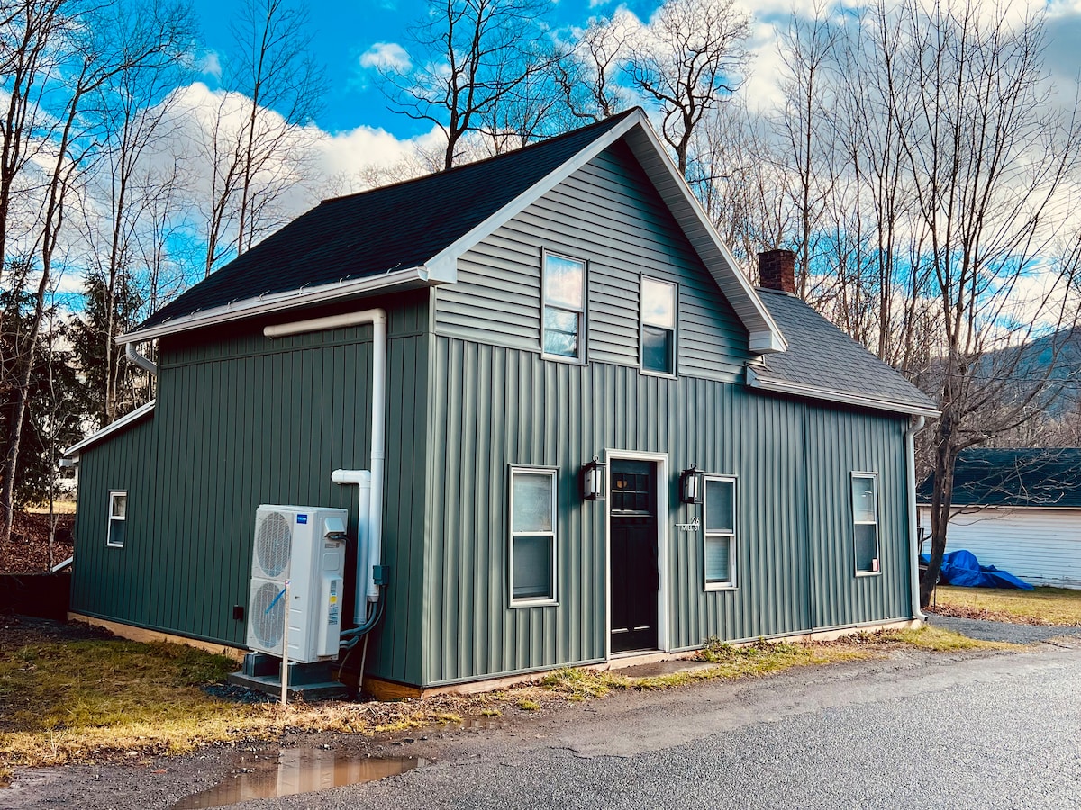 Newly renovated 2 BR private home in the Catskill foothills perched next to a beautiful waterfall and stream. Furnished with quality and care, with an eye toward modern style and comfort. Gas Grill on covered porch, Campfire area, & outdoor table and benches for dining outside! Hiking trails and swimming holes nearby. Walking distance to Zoom Flume Waterpark, 12 mile drive to Windham Mountain, 30 minutes to Hudson. But really no need to go anywhere once you settle in to this quiet retreat!
