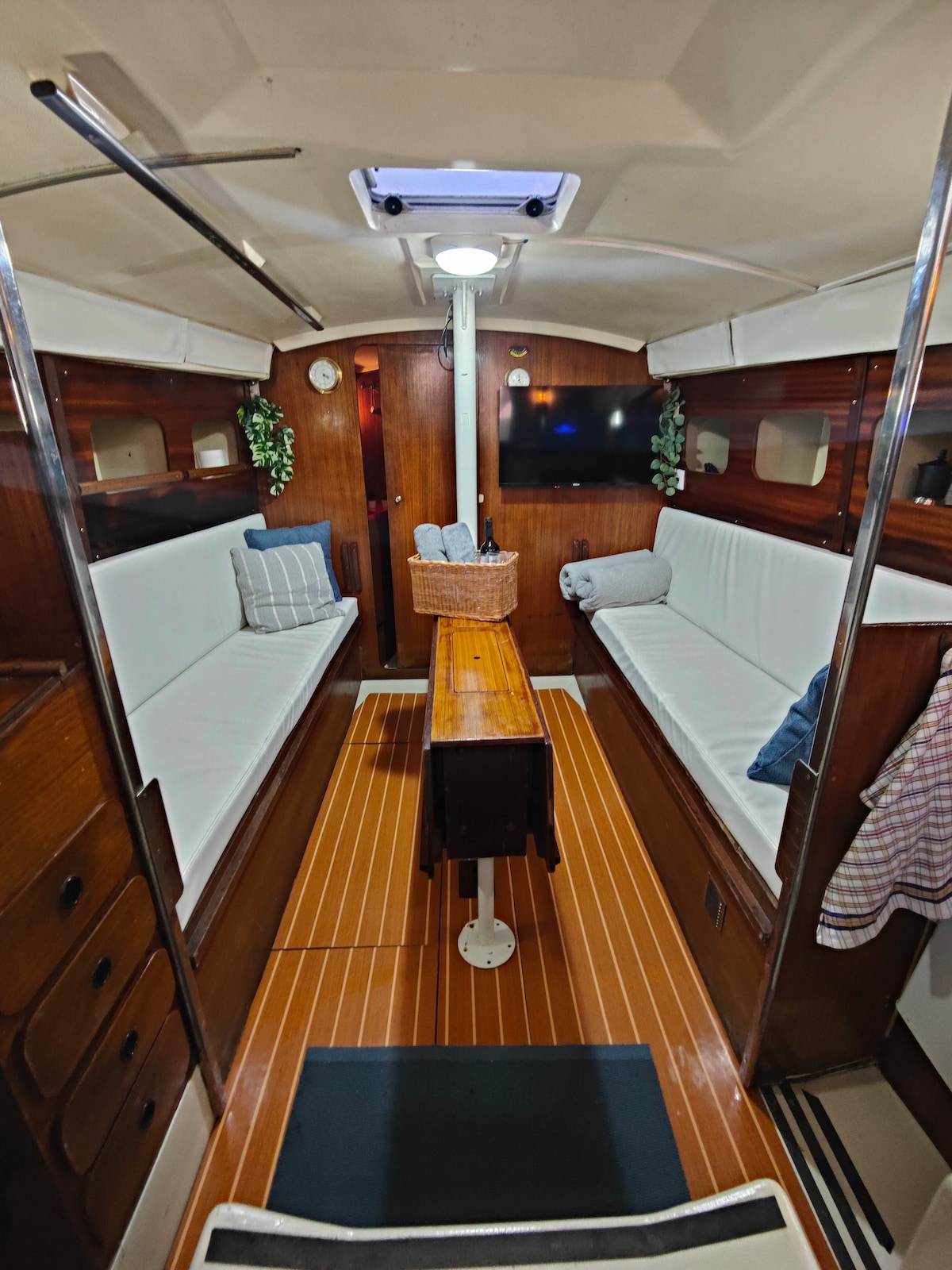 Great Expectations is a exclusive “Westerly Typhoon 37” built in England in 1991. The wood interior creates a warm atmosphere that reminds an english pub. The construction quality, the materials and the design will make you feel home.. For your entertainment (or to work) you have private wifi (not shared with anyone else) and a smart TV ( with Netflix) aboard. There is music radio system ( with usb connection) for entertainment aboard. PARTIES AND SMOKING ON THE BOAT ARE STRICTLY FORBIDDEN !