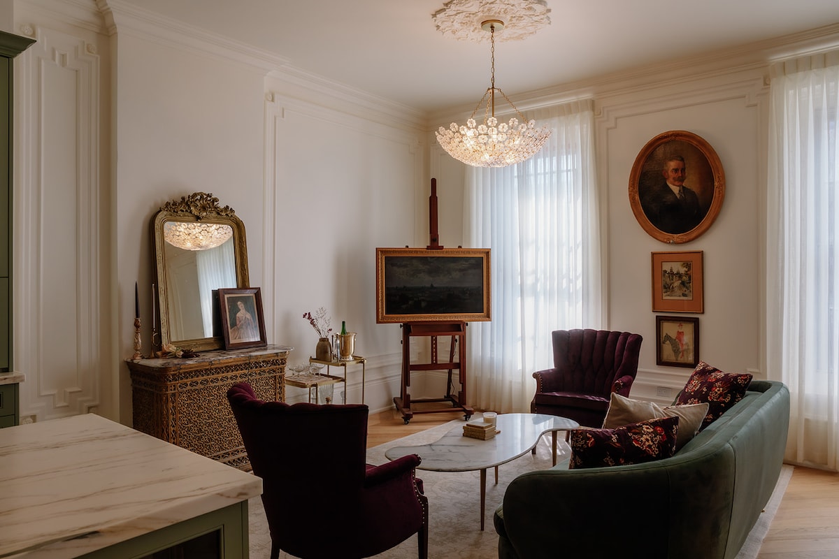 Visit Port Hope's vibrant downtown and stay in the heart of it all. Inspired by a classic Parisian Pied-a-terre, inside The Colette Rose you will find 12ft ceilings, plaster moulding details, a complete calacatta viola marble shower, chevron wood floors, and vintage carpets. No detail has been overlooked to bring the most authentic Parisian experience to your stay.