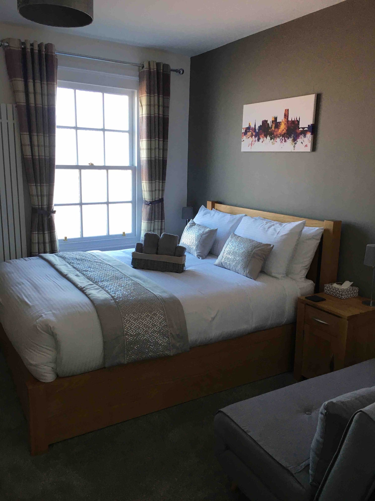 Set in the heart of Durham, The Bowers Lodge is perfect for a homely yet stylish place to stay. With great space, Bowers Lodge offers a Master bedroom and a second Guest room with all your amenities such as a dressing area, hairdryer, full use of kitchen facilities and more. Just 8minutes walk from Durham train station, take a short walk into the beautiful City Centre. This spacious flat gives tranquillity with a picturesque view of The Flass Vale to the rear, offering stunning walks.