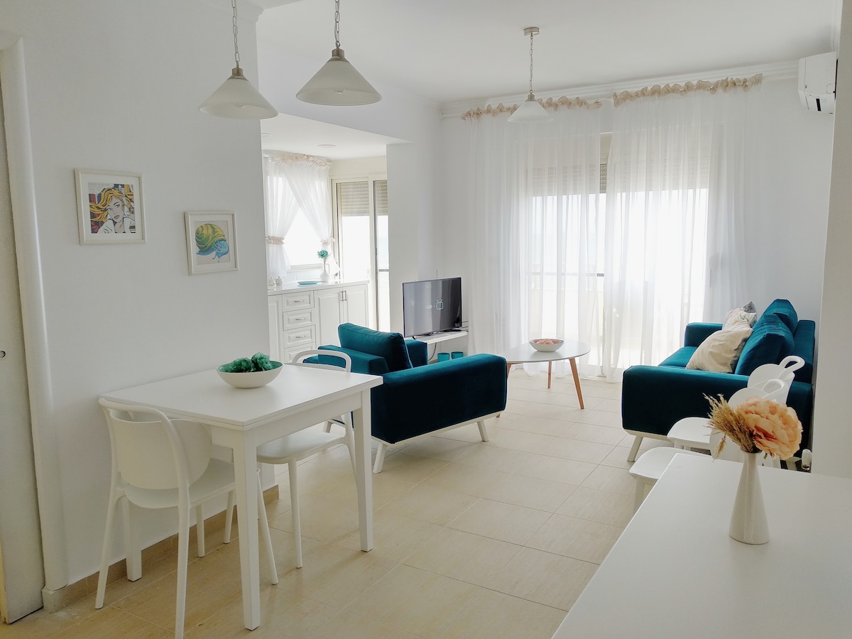 🌞 Step into your sun-kissed escape — a stylish 🌊 sea-view apartment just steps from the sand, where the sound of waves greets you each morning and 🌇 golden sunsets pour into your balcony each night. 💫 Whether you're dreaming of a peaceful getaway, a 💑 romantic retreat, or a 💻 remote work haven, this beachfront stay offers everything you need to relax, recharge, and feel at home in Durrës.