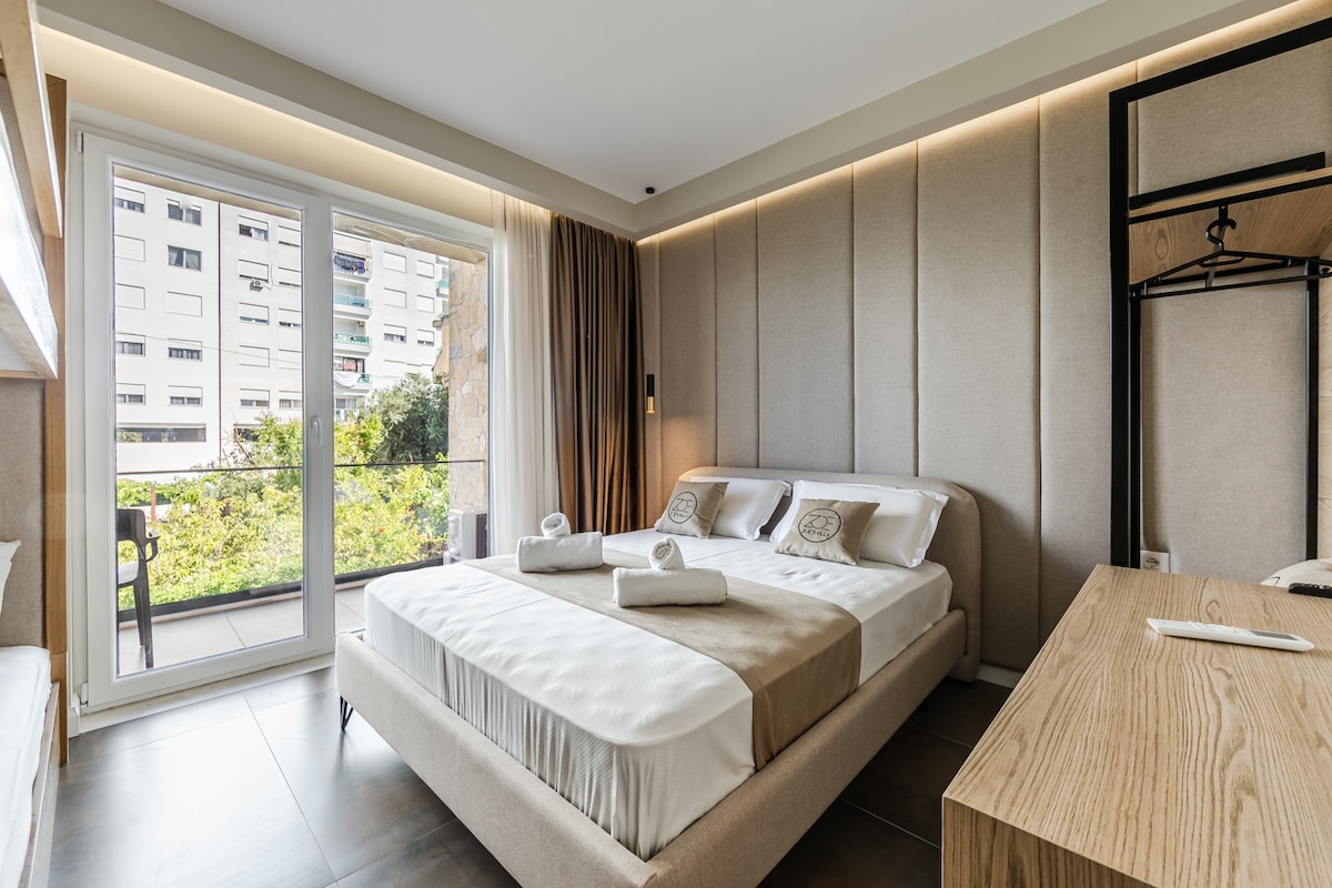 This ZINS Room offers a calm, architectural retreat shaped by the creative vision of ZINS—founded by Noizy, Albania’s most influential artist with global recognition. Clean lines, natural textures, and soft light create a balanced space where design meets lifestyle. Large windows and a private balcony bring the outside in, while the interior reflects a modern Albanian identity made for international travelers who value culture, design, and quiet luxury.