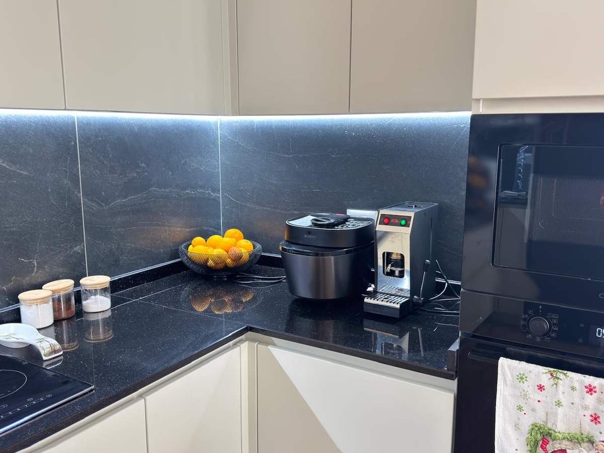 The apartment is clean, bright, and equipped with everything you need for a comfortable stay. Each room comes with fresh towels and shampoo. The kitchen is fully equipped with all the essentials for cooking, and the balcony is the perfect spot for a quiet breakfast or an evening coffee. We’re just a few minutes from the beach – an easy walk away. Wi-Fi, air conditioning, and a host always ready to assist you are all at your disposal.