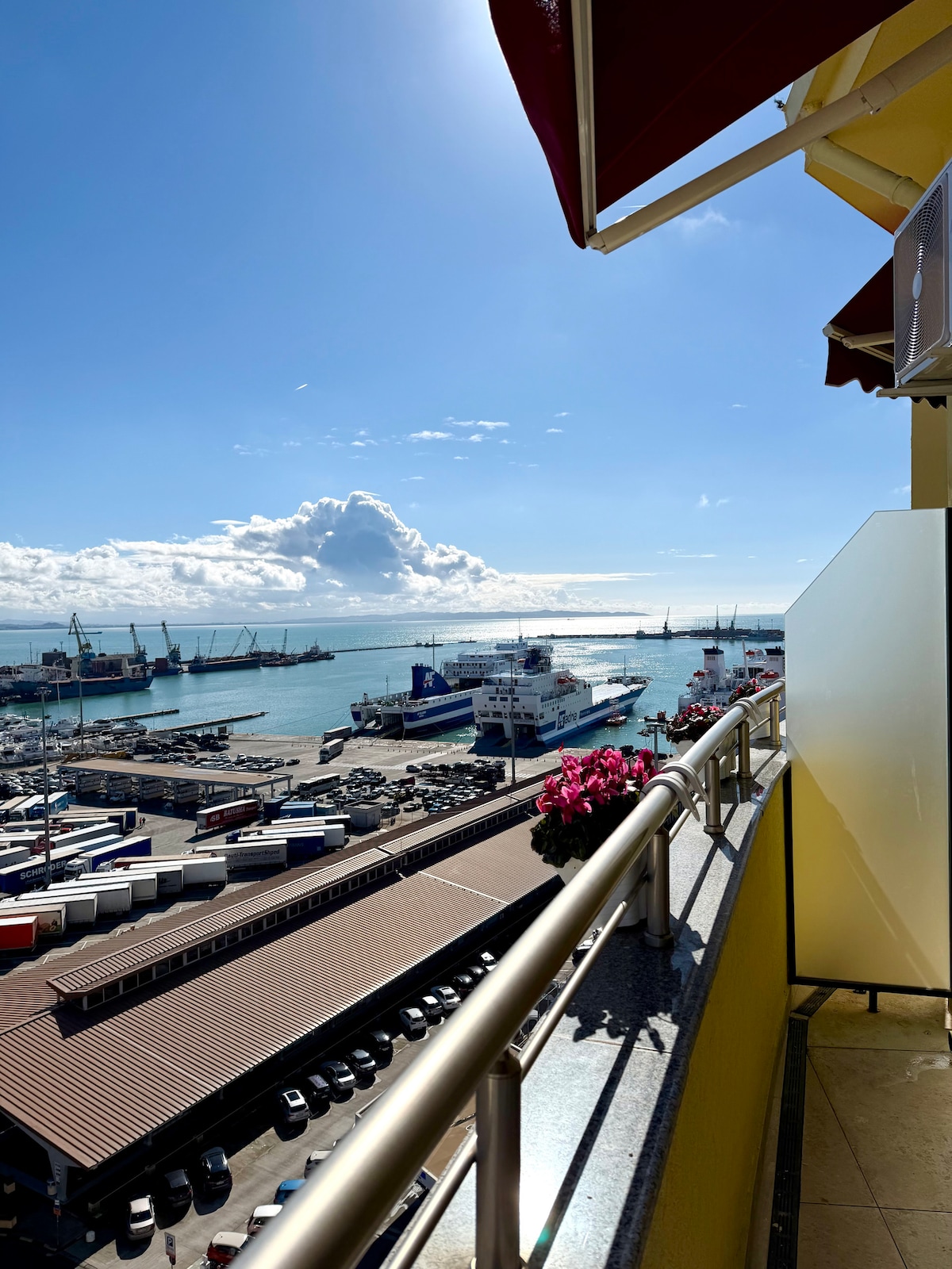 Rooftop Marina offers a refined luxury experience on the top floor, located near the Port of Durrës and close to the city center. The space accommodates 3–4 guests and features an elegant bedroom with a double bed and a comfortable sofa bed. The large private balcony with panoramic views of the marina and city is ideal for peaceful mornings and romantic evenings. The beach, restaurants, shops, and main attractions are all within walking distance. Paid parking is available nearby.