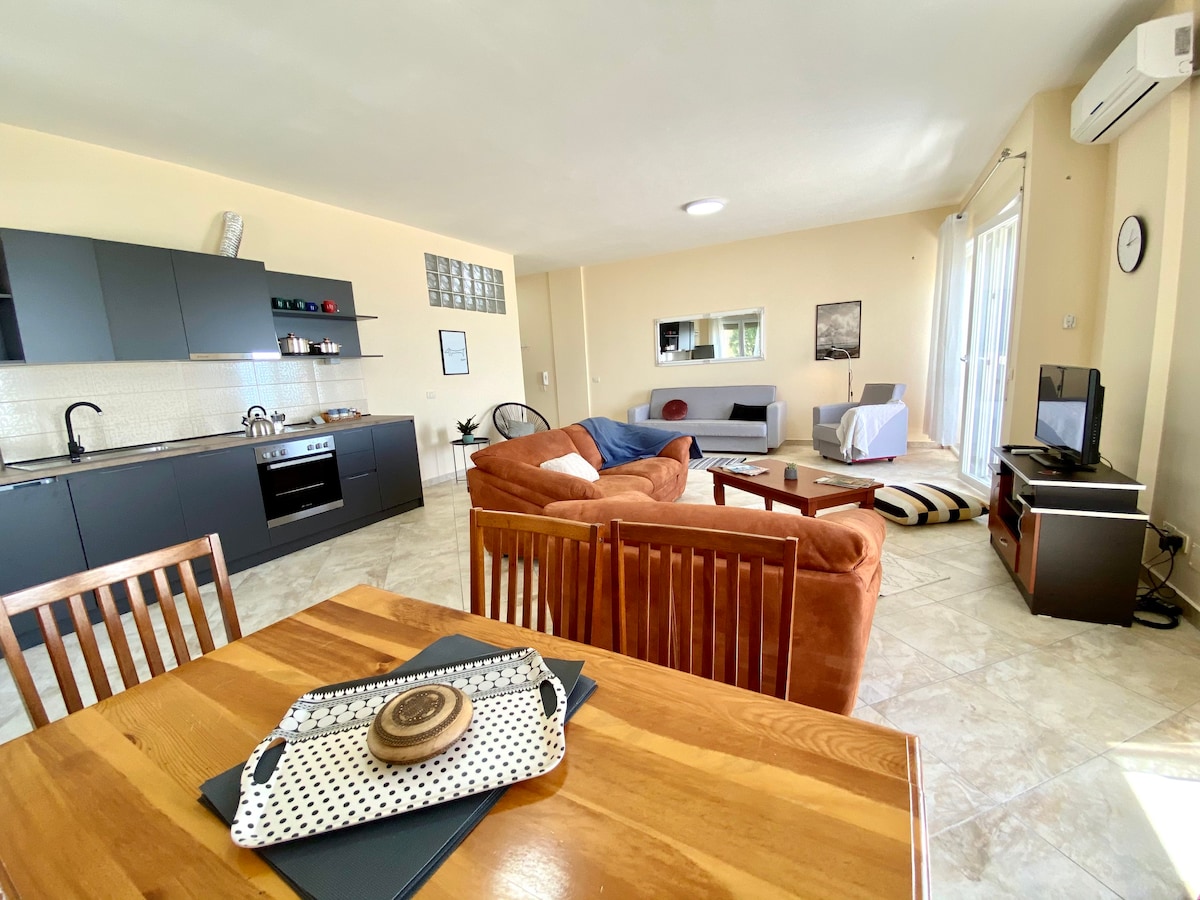 The open-concept living room and kitchen are designed for comfort. Both the living room and bedroom open onto a spacious terrace, perfect for relaxing. Facing Southwest, it enjoys abundant sunlight. Just a 5-minute walk from the beach and close to Tropical Resort, Golem, and Spille. Located in a vibrant neighborhood full of restaurants and bars in walking distance. Perfect for enjoying the sea, relaxing, or exploring various locations.