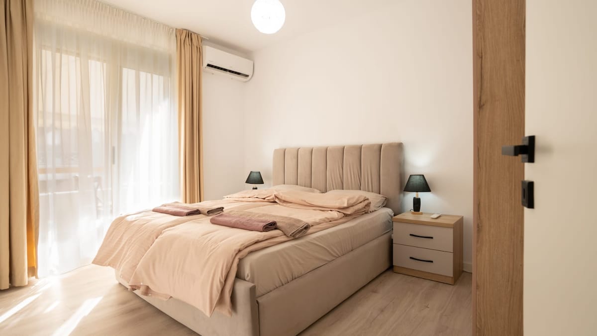 Welcome to our brand-new luxury apartment in Durres! Ideally located, it features a cozy bedroom, spacious living area with a smart TV, fully equipped kitchen, and modern bathroom. Relax on the balcony and enjoy the sea breeze. Steps from the beach, top restaurants, cafés, and nightlife. Perfect for a romantic getaway, family vacation, or business trip, with WiFi, air conditioning, and self-check-in for a seamless stay. Book now to experience the best of Durres!