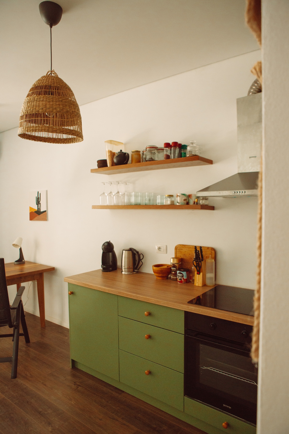 Each Apartment is unique in color and furnishing. There is a beige apartment, the bordeaux apartment and the Santorini apartment. However, they all share in common the view of the sea. The apartments are located near the beach and near the bus stop, which makes it perfect for travelers and families to go to the beach or head to town. There is strong wifi, and a fully furnished concept which is perfect for remote workers or guests who prefer a longer stay.