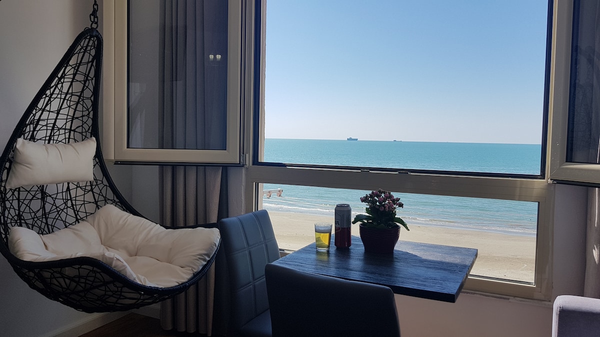 🌞 Step into your sun-kissed escape — a stylish 🌊 sea-view apartment just steps from the sand, where the sound of waves greets you each morning and 🌇 golden sunsets pour into your balcony each night. 💫 Whether you're dreaming of a peaceful getaway, a 💑 romantic retreat, or a 💻 remote work haven, this beachfront stay offers everything you need to relax, recharge, and feel at home in Durrës.