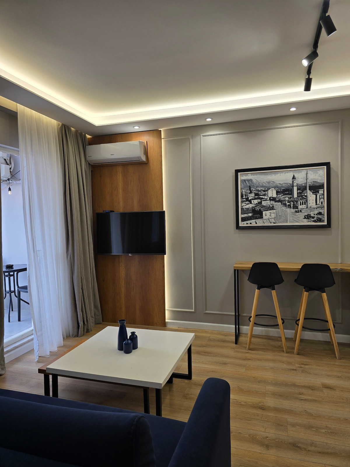 Welcome to our chic 2-bedroom flat in Tirana's heart. Next to Skanderbeg Square and the National Museum, it's a short walk to the lively Blloku area. In 5 minutes, visit the Bunkart Museum, House of Leaves, National Art Museum, or the bustling New Bazaar. The apartment is designed for the modern traveler with high-speed wifi, ideal for digital nomads. Nearby are top restaurants, supermarkets, and everything you need. Experience Tirana's charm from our flat. We look forward to hosting you.