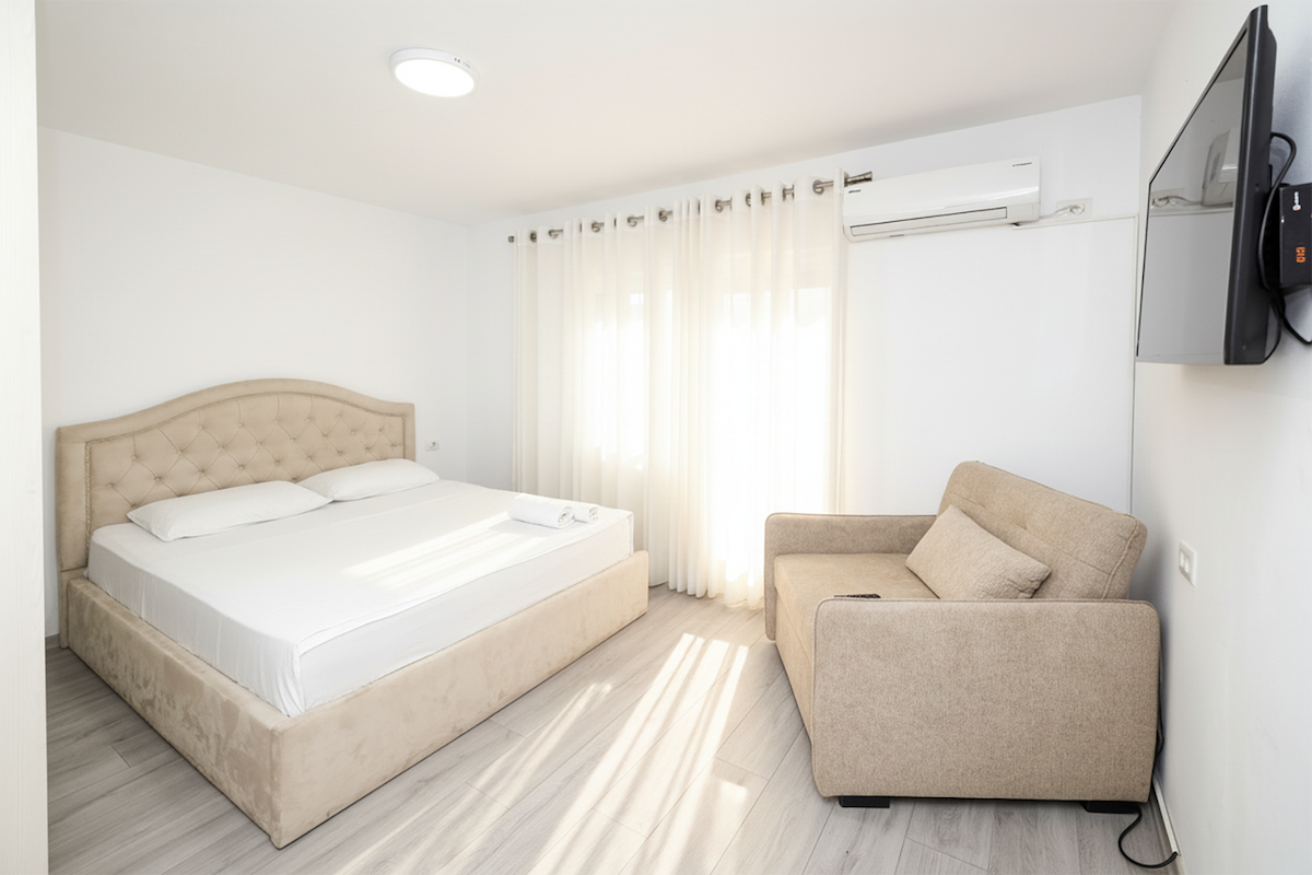 The space is bright, comfortable, and fully equipped to make you feel at home, whether you’re visiting for a short trip or a longer stay. The apartment is perfect for families, friends, or business travelers, offering a private veranda with a lovely view, modern amenities, and easy access to local cafés, restaurants, and shops. Situated in the Komuna e Parisit district, the apartment is surrounded by cozy cafés and family-friendly restaurants.