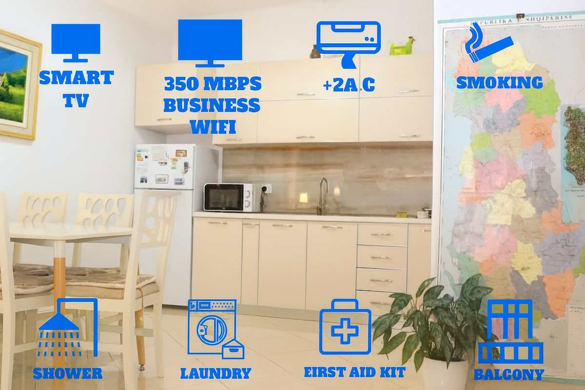 ☀️With 180 degrees panoramic views from east to west.The apartment is 7.9 km from airport TIA ✈️and 8.8 km from center of Tirana🌇 It’s easy to find in center of Kamza Town, the main road that lead to Tirana. On the first floor there are a series of facilities such as Bank, Exchange , supermarkets, Coffee, Pharmacy stores, bus stations etc. Easily visited places are Boville Lake, Kruja Castle, Preza Castle the center of Tirana. The lift is taken up from the 3rd floor.(1,2 floors are business space)