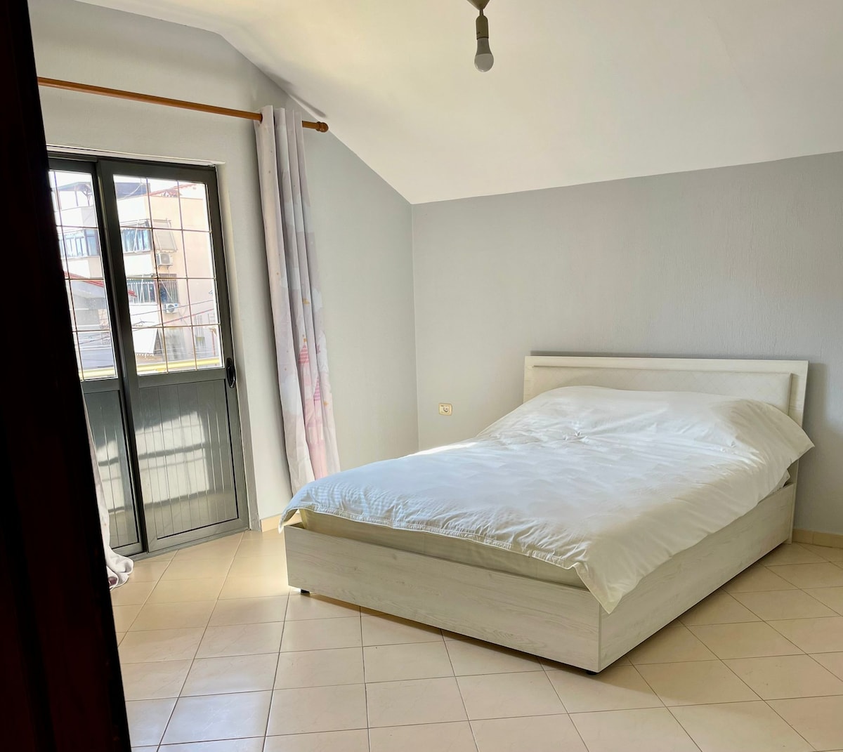 The place is a 3 floor private owned house located in a safe neighborhood where there are shops nearby. Located near the modern building complex named “Kontakte” where a lot of family members live. The place is around 20 minutes away on foot from the monumental statue “Sheshi Skenderbej” where the city center is or around 8 minutes by using a vehicle. You are welcomed to bring your pets as we have a big balcony where he can play around.
