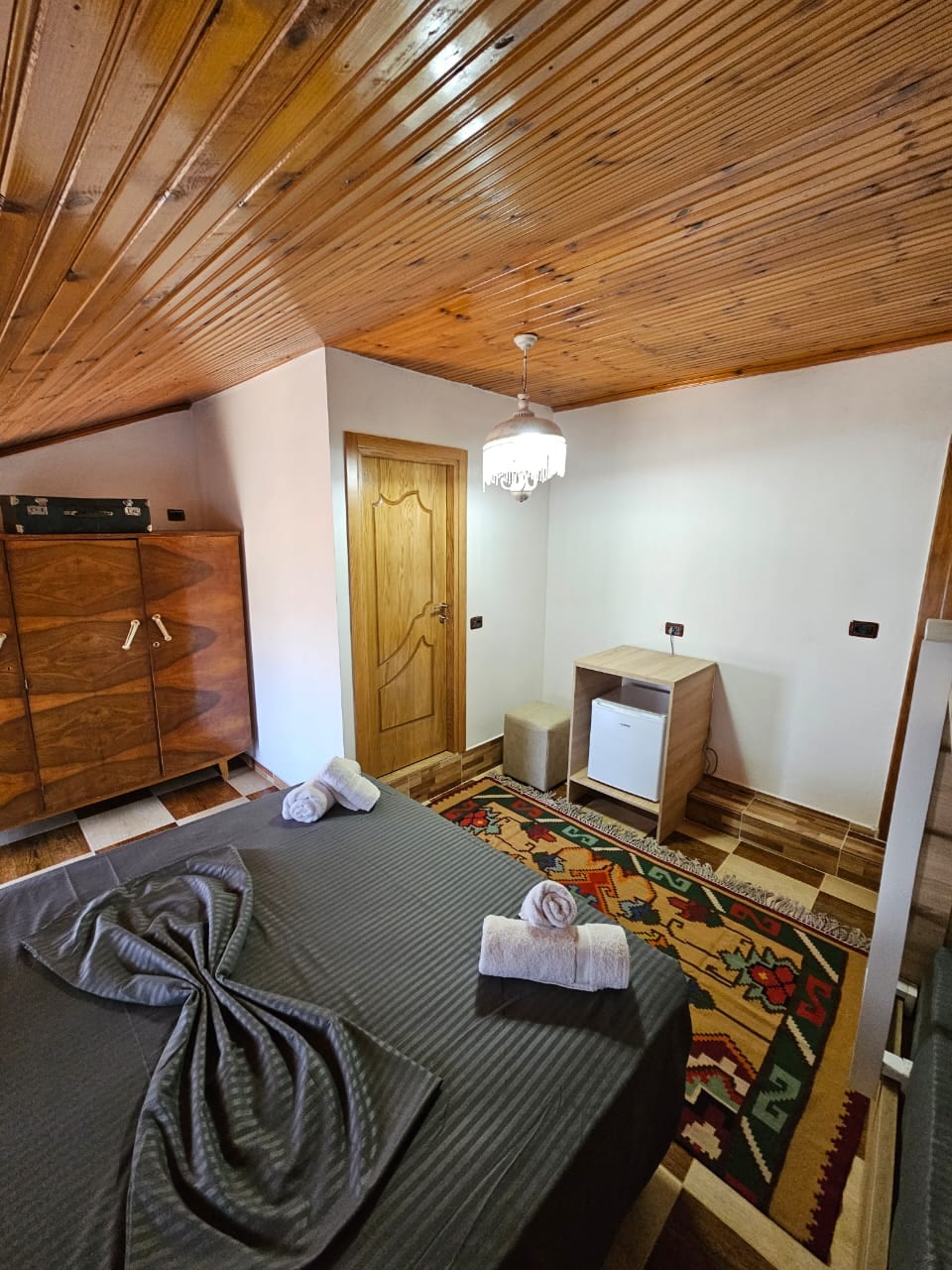 It is located on the 3rd floor and has a beautiful view of the sunset. It is quiet, private, and comfortable. You can visit the Dros Canyon, Qafshtamen Mountain, and Lake Baruni.