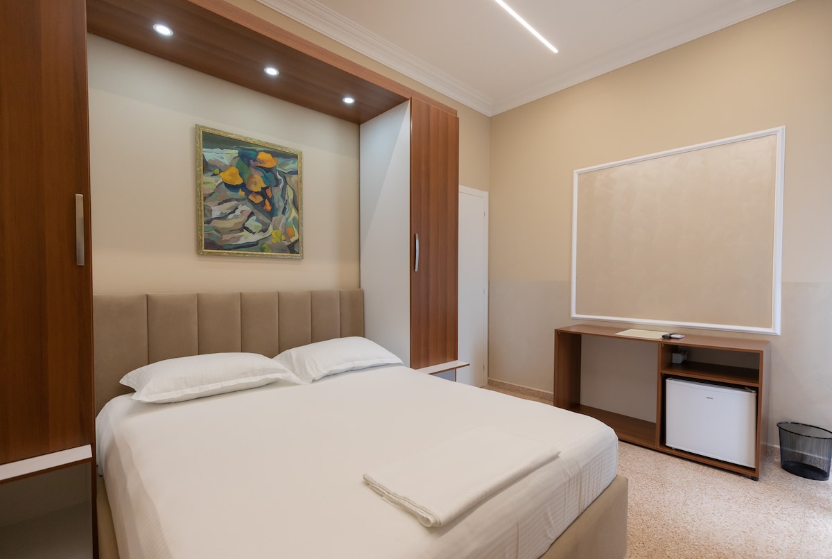 Relax in our spacious double room featuring a comfortable double bed and a private Jacuzzi for ultimate comfort. Enjoy free Wi-Fi, air conditioning, TV, and a modern bathroom. Perfect for a romantic getaway or a relaxing stay close to the sea.