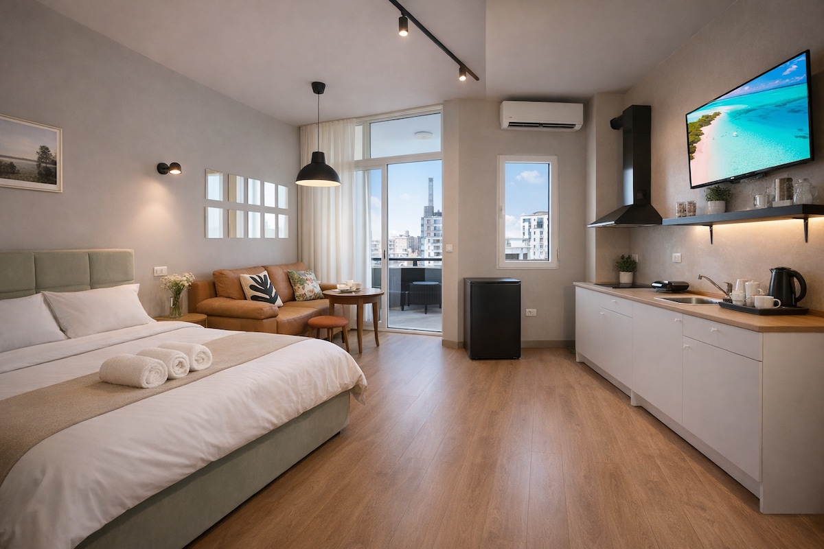 现代单间公寓,主干道旁_带阳台 • 无清洁费