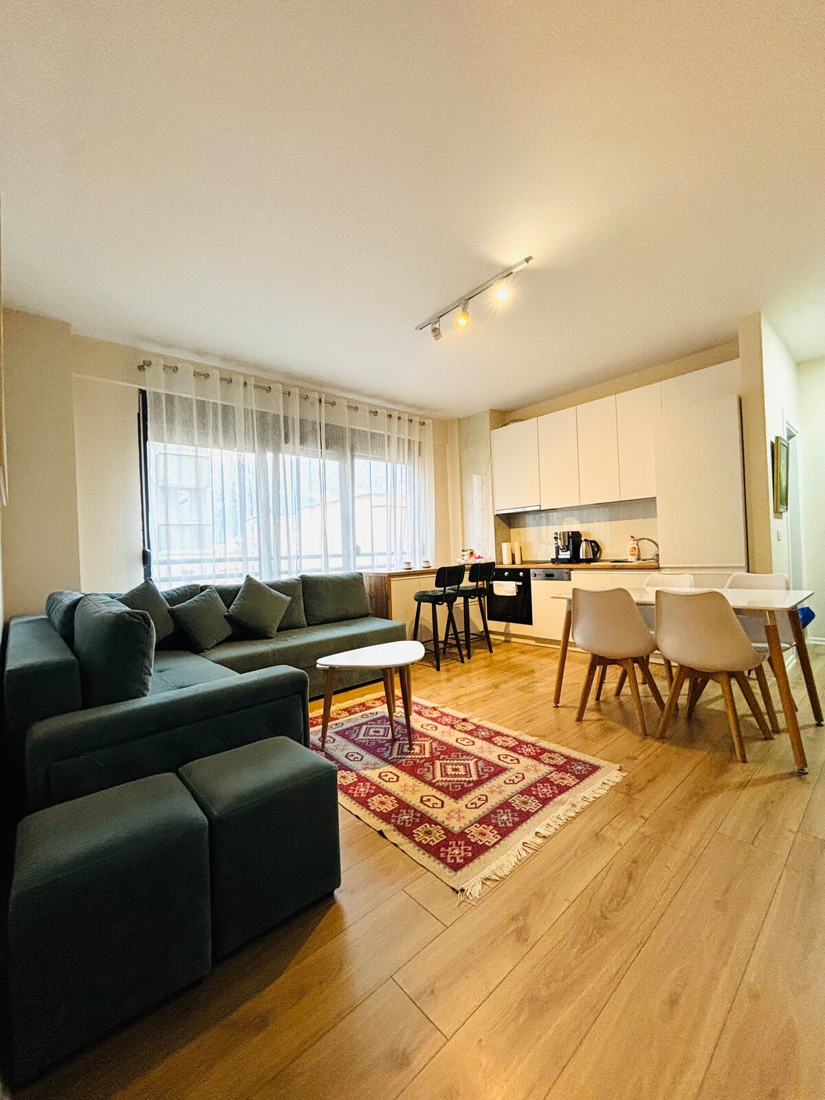 New and very modern one bedroom apartment in the center of Tirana. It is located in one of the best buildings of Tirana, just 2 minutes walk away from Skanderbeg square. The apartment has a fully equipped kitchen, a big living room and a very comfortable king size bed. It is located in the 3rd floor of the building, accessible via elevator.