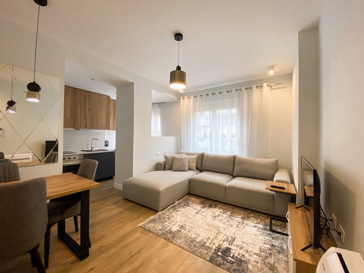 Enjoy Tirana "Paris-style" in this beautiful one-bedroom apartment located in the heart of Tirana’s most well-known Boulevard. This newly constructed apartment is ideal for anyone looking to stay in the center of Tirana within walking distance from the Skanderbeg Square, the New Bazar, restaurants, and museums. If you are too tired to cook - - head down for locally baked pastries and coffee at the famous “Le Bon" pastry shop conveniently located in the building lobby