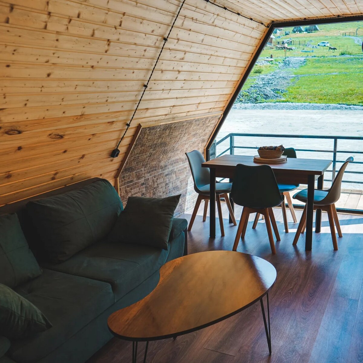 Peaceful A-frame cabin in Kazbegi - Stepantsminda by the river, surrounded by mountains. Enjoy fresh air, beautiful views, and total tranquility. Clean, cozy, and fully equipped. Perfect for couples, friends, or families. Close to hiking and waterfalls. Hosted by a Superhost for a smooth stay.