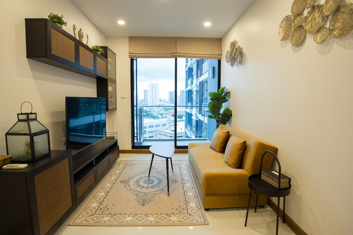 -45 sqm studio apartment with kitchen and balcony. -Non Smoking / No Cannabis -One king-size bed -5 minutes walk from BTS Sanampao (N4), exit#3 -Private bathroom with shower, hairdryer, toiletries and towels -Air-con/ Free Wifi/ TV -Safety deposit box -Living area with sofa -Free Luggage storage -24-hour security -Easy check-in/check-out -Free parking spaces -Swimming pool & fitness *Rate shown is for 2 guests, extra guest is THB 500 per night. Please put number of guests to check price