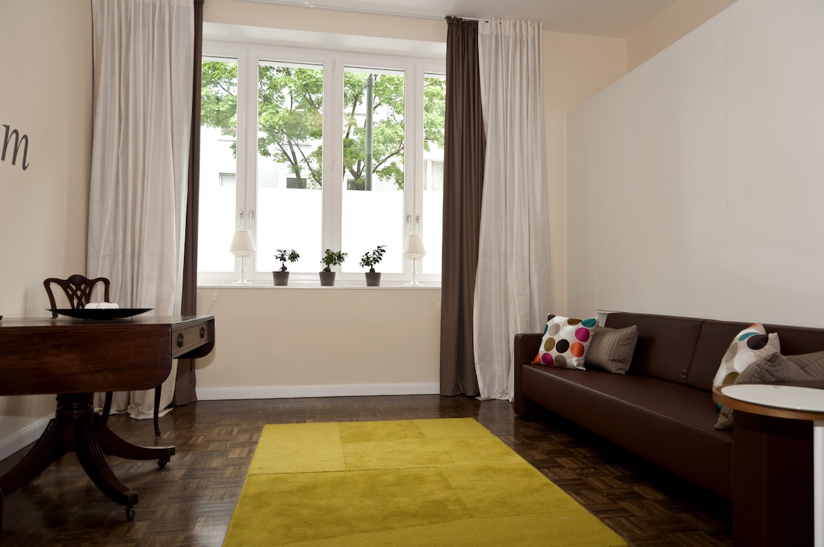 Unser Garten-Apartment befindet sich im Hochparterre eines Jugenstilhauses aus dem Jahr 1906. Dir stehen zwei Zimmer mit insgesamt 90 qm zur Verfügung. Ein Wohn- und Schlafzimmer und eine Wohnküche. Alle Fenster und die sonnigeTerrasse haben Blick in den Garten. Unsere Bibliothek lädt dich zum Lesen ein. Genieße entspanntes und grosszügiges Wohnen in ruhiger Lage im Zentrum von Düsseldorf. Der grosse Shaker-Tisch lässt sich auch für Meetings mit bis zu 6 Personen nutzen.