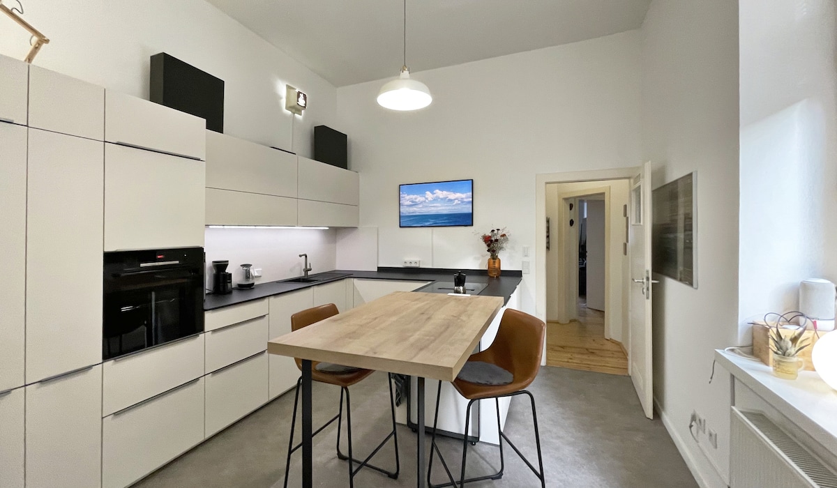 Dieses moderne Penthouse im Herzen der Stadt verbindet urbanes Leben mit echter Entspannung. Auf 86 m² erwartet dich ein stilvolles Zuhause mit Kamin, Heimkino und privater Dachterrasse & Whirlpool. Die Fußgängerzone ist nur 500 m entfernt, Königsallee und Altstadt erreichst du in ca. 10 Minuten – zentral und dennoch angenehm ruhig. Im Schlafzimmer laden dich eine freistehende Badewanne mit TV sowie ein King-Size-Bett (2×2m) zum Abschalten ein. Ankommen. Abschalten. Düsseldorf genießen.