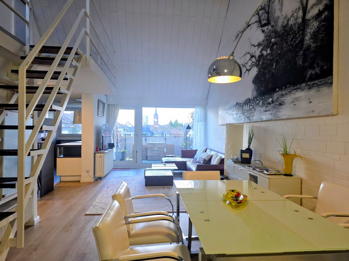 Bright, cozy loft (80sqm) for max. 4 people. Open-plan kitchen, bathroom, separate dressing room, amazing, large roof terrace. Pets are allowed and will be charged with 20,--€ per stay. Excellente central location in downtown Düsseldorf-Oberkassel, yet very quiet. Tram, Supermarket, Bakery, and lot of restaurants are in a small walking distance, 2-5 min! One-site parking in internal courtyard for free!