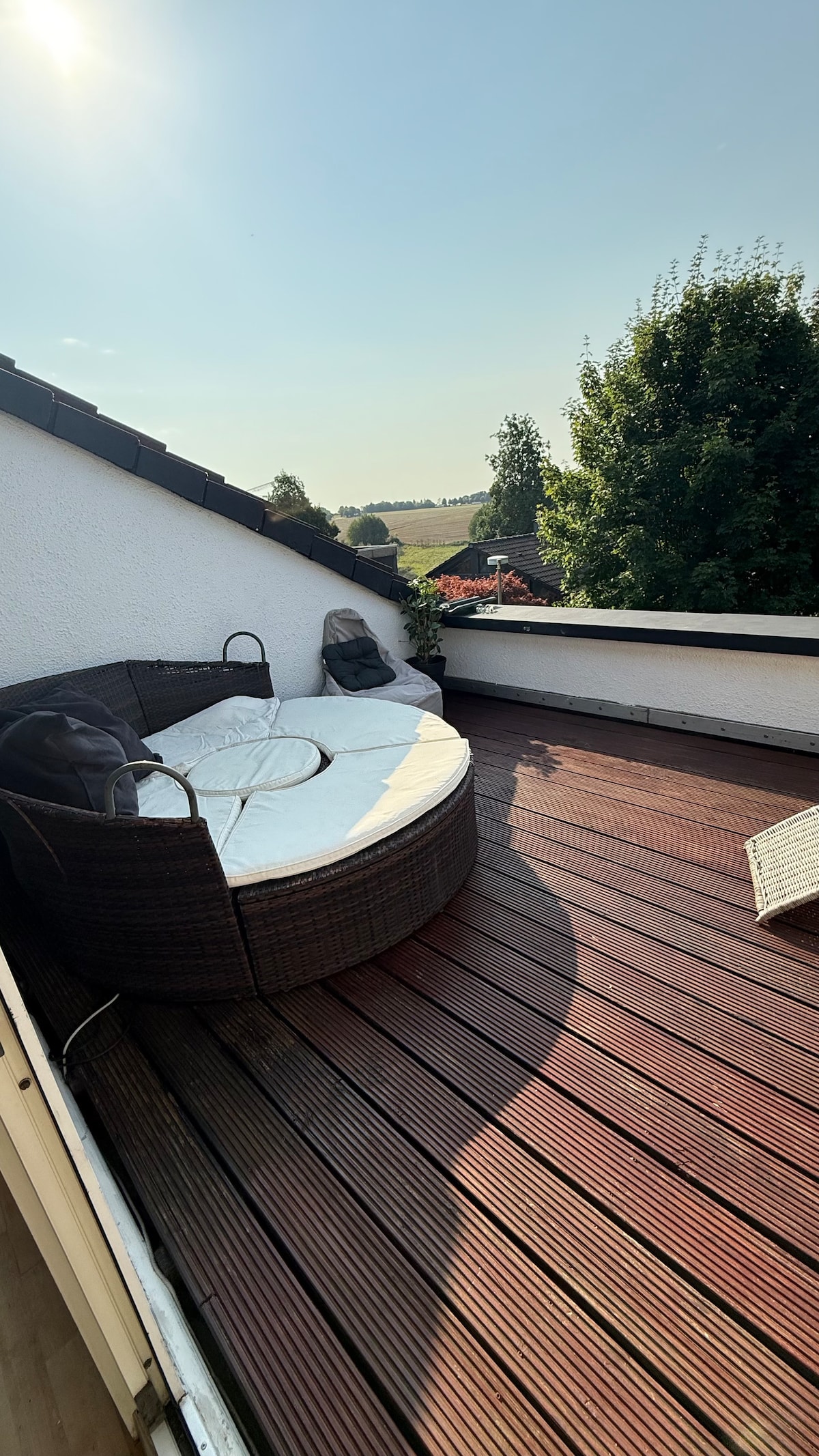 Luxurious Forest Escape - Private Sauna, Smart TV & Parking Indulge in a romantic forest retreat perfect for couples or families seeking elegance and comfort. Enjoy a private sauna, full kitchen, and a stylish living space with a 60-inch Smart TV. Comfy beds, a washer, dryer, and free parking add convenience. Nestled beside peaceful woods, the escape features scenic trails to a dam. Though surrounded by nature, you're only a short drive from cities, airports, and the Cologne Trade Fair.