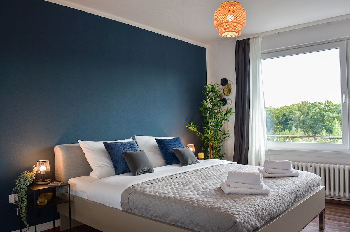 Beautiful 65 m² apartment in the heart of Duisburg with a large balcony 🏖️ (incl. seating area & Strandkorb) and perfect connections to Duisburg Central, Düsseldorf & Messe Düsseldorf 🚆 Highlights: U-/tram stop (Platanenhof) 200 m (U79/903) 🚋 Central yet quiet 🌳 Underfloor heating 🔥 Fully equipped kitchen 🍽️ Home office space 💻 Rain shower 🚿 In-room bar 🍷 Smart TV with Netflix 📺 Ideal for city trips or business stays ✨ Fast charging station for electric cars right on the street ⚡🚗