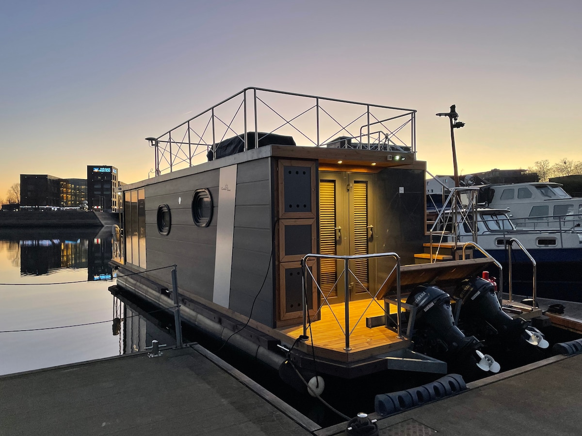 Our small 13 meter long houseboat Lore is located in the inner harbor of Duisburg, 3 minutes from the city center in one of the trendiest areas of the city: the inner harbour. The Lore has two spacious bedrooms, a roof terrace with lounge furniture, a small covered terrace, a living room with a direct view of the water, a kitchen and of course a bathroom with shower and toilet. The Lore is winter festival and can be booked 365 days a year. We have had three boats in the harbor since 2025.