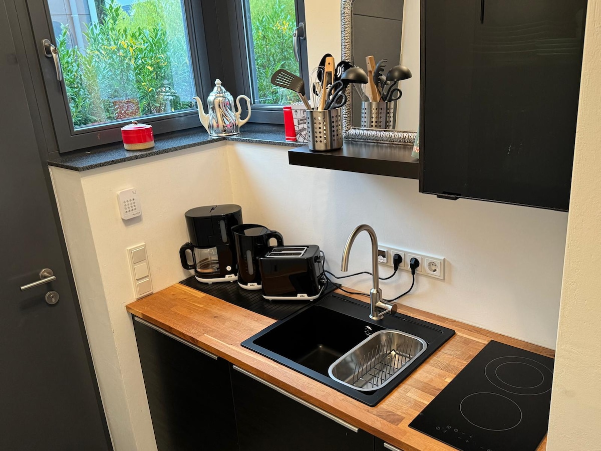 Das neue Appartement (inkl. sep. Eingang) liegt im Herzen Essens schönstem Stadtteil: Werden. Es erwartet Dich: Eine große, stilvolle Wohnküche inkl. Esstisch und gemütlichem Sofa in einem sonnigen Wintergarten (Blick ins Grüne). Ein geräumiges Schlafzimmer mit großem Doppelbett und Einbauschrank. Ein heller Flur und ein stilvolles Badezimmer mit Regendusche/Sitz. Dazu: neues Parkett/Fliesen, WLAN, Bettwäsche, Handtücher, Espressomaschine u.m. Fussweg zu Cafés, Restaurants, Baldeneysee 2 min.