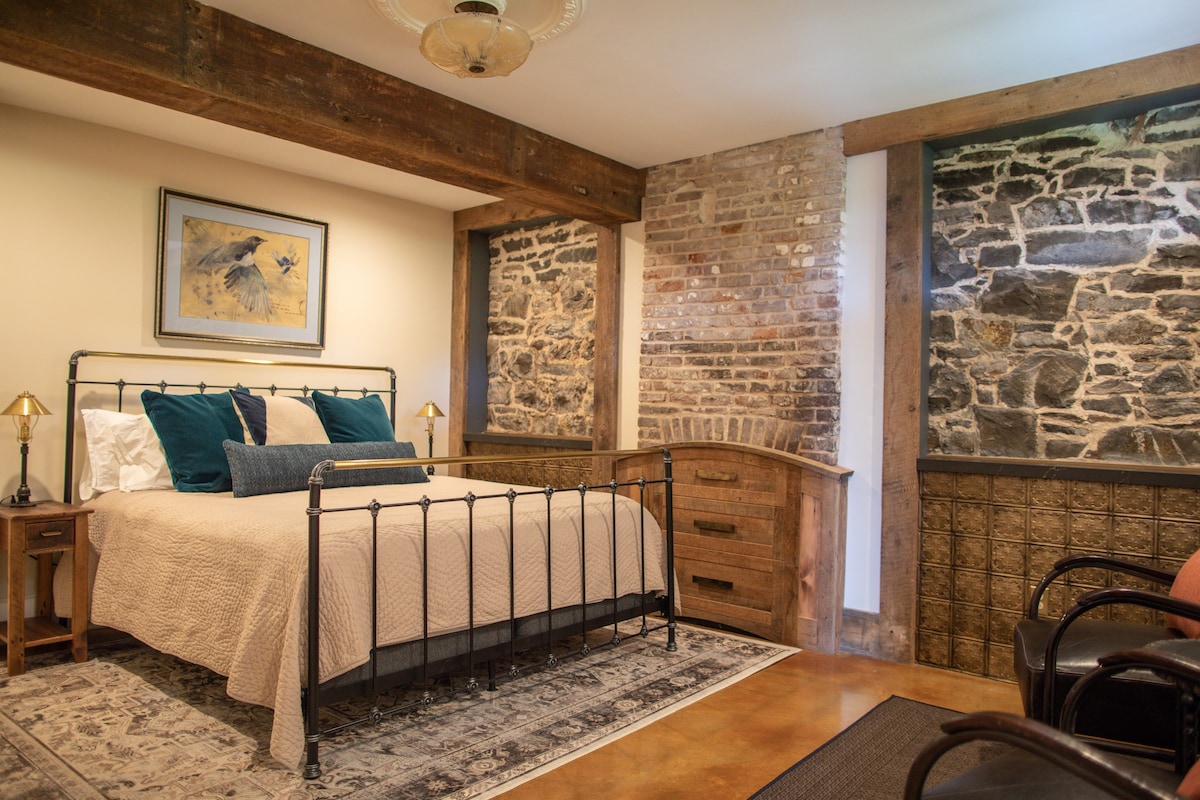 DeMew Townhouse is beautiful duplex apartment located in a renovated 1850s building overlooking Hideaway Marina in the Rondout district of Kingston. The building boats a rich history: the main floor of the building served as a speakeasy during Prohibition. It has hand rubbed oak floors, a renovated kitchen and bath and 14 windows providing views of the Rondout. With a spacious open plan, the DeMew Townhouse is the perfect location from which to explore Kingston and the Hudson Valley.