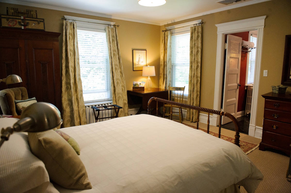 Welcome to The Gables of Rhinebeck, a 4-suite Inn located 1 block from main street. This historic Inn is a fifteen-gable 1860 Gothic Revival Victorian in the heart of Rhinebeck Village. Guests have full access to our half-acre fenced-in yard with perennial and ornamental gardens, + plenty of indoor space. This room, "Storm King" is a 1 + 1/2 BR Suite at our Inn. About Your Suite: -King Bedroom on the 2nd floor with L-couch / pullout queen sofa. https://www.TheGablesRhinebeck.com/