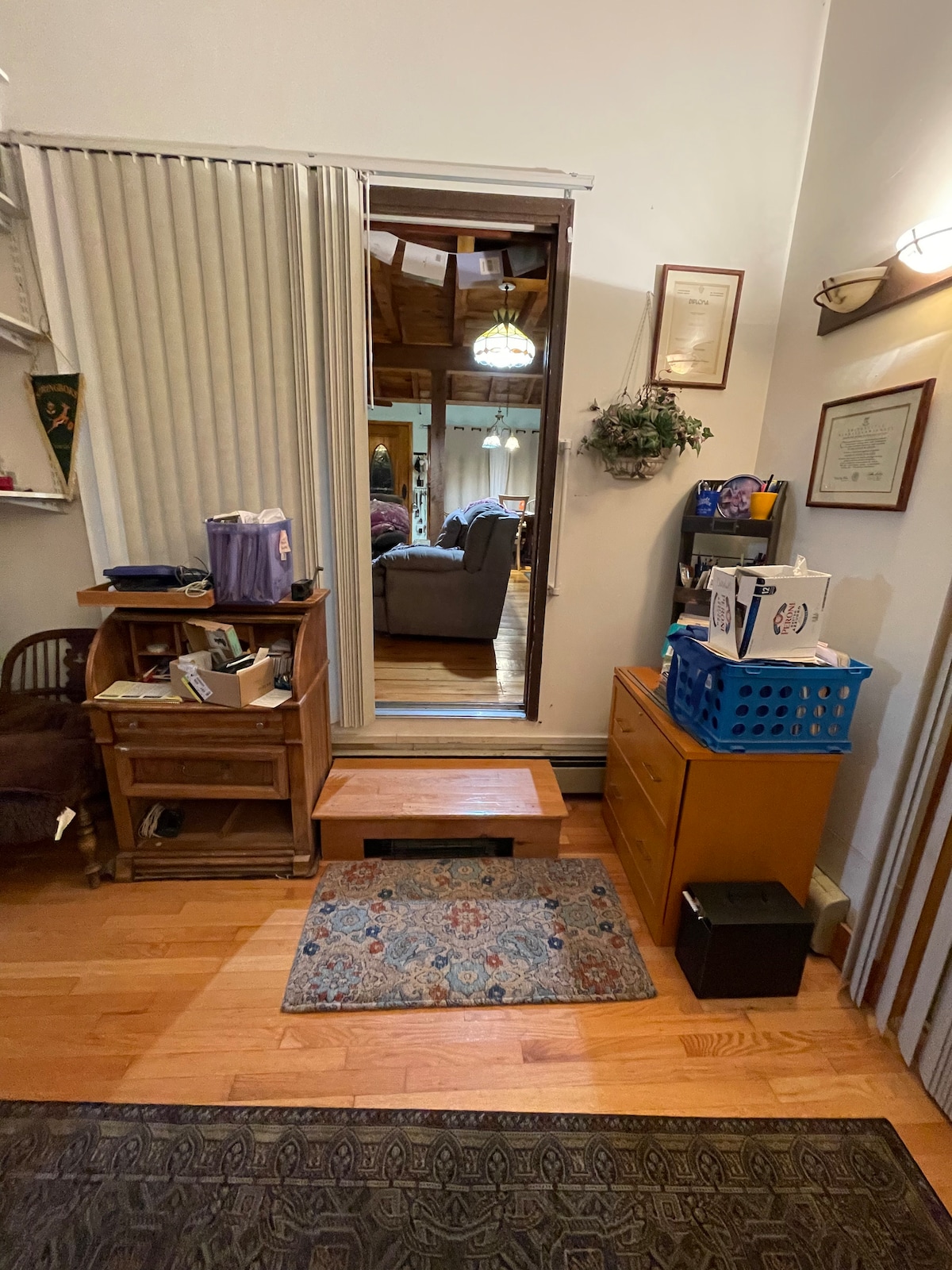 Welcome to Marlboro! This private space in our home features a private entrance, private bathroom with a nice standing shower, eating area (not a kitchen) with tea kettle and coffee machine, toaster, microwave and refrigerator with freezer. There is a table and chairs, love seat couch that transforms into a small cot, queen bed, walk in closet and 55 inch smart TV with a full motion TV stand. We are permitted to operate in the town of Marlboro and a yearly fire inspection is conducted.