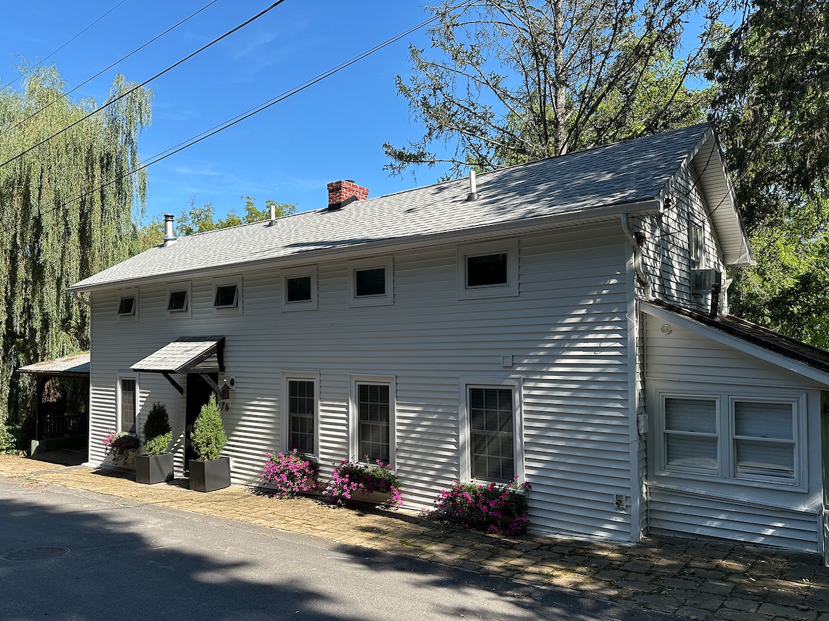 2nd floor apartment. Separate entrance, private bath (shower). Comfortably accommodates two people. Charming eat-in kitchen opens onto small deck with Esopus Creek view. Both can be used as work spaces. Short walk to village center. NEW OPTION! “The Sun Studio” with futon sofa/sleeper for 2. Add this beautiful room to your accommodations just across the hall. Best views! Full of light! A desk for your laptop. Space for your yoga mat. $45/night extra, with discounts for longer stays.
