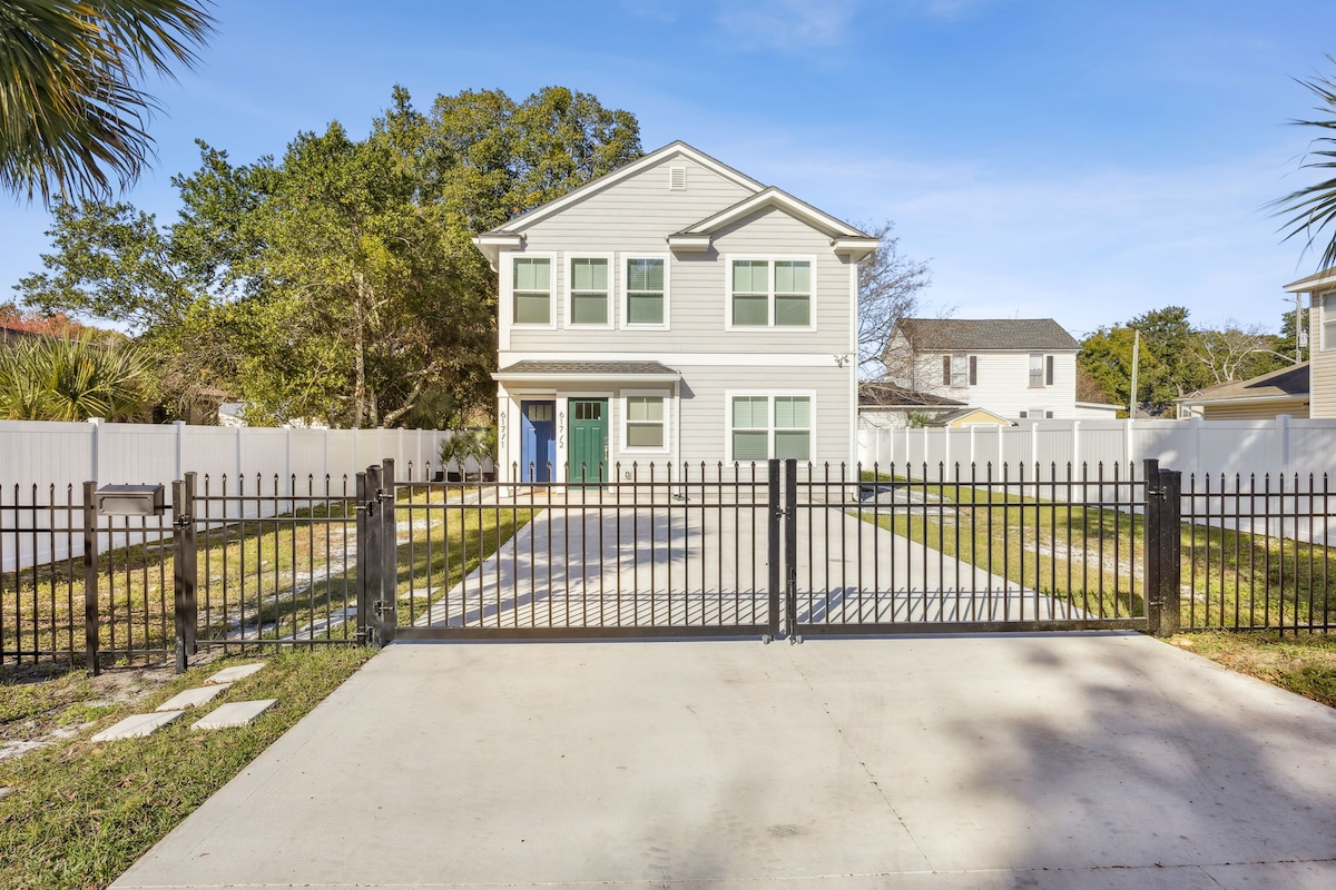 Enjoy your stay at this shady oak guesthouse. It is located on our 2 acres of land with the view of a neighboring lake. Don’t let the size fool you, it has a queen size bed, small kitchenette with fridge, microwave and coffee. The eating area can double as a workspace if needed. It has a full-size bathroom as well. It has a brand new ac and air purifier. It has outdoor seating, privacy fence and keyless entry. Minutes away from JIA, River City Marketplace, the Zoo and the Cruise terminal.