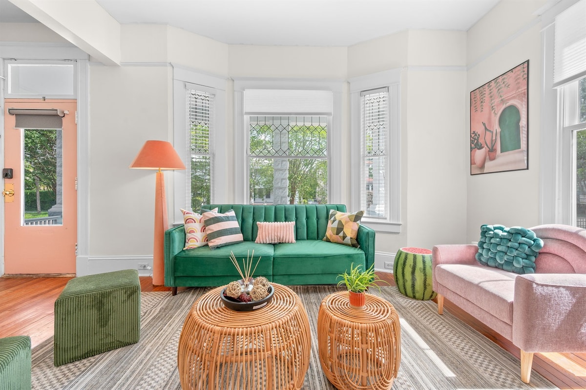 Entire Downstairs apartment located in Historic Springfield. The apartment is warm and inviting with modern dark walls, cozy decor and a recently updated kitchen. The main bedroom has a king size bed. The second has a queen size bed with an original 100 year old fireplace as the main accent. Be sure to read the house rules and neighborhood description so that there are no surprises after your reservation is confirmed. Ring cameras monitor all the entrances and are motion activated.
