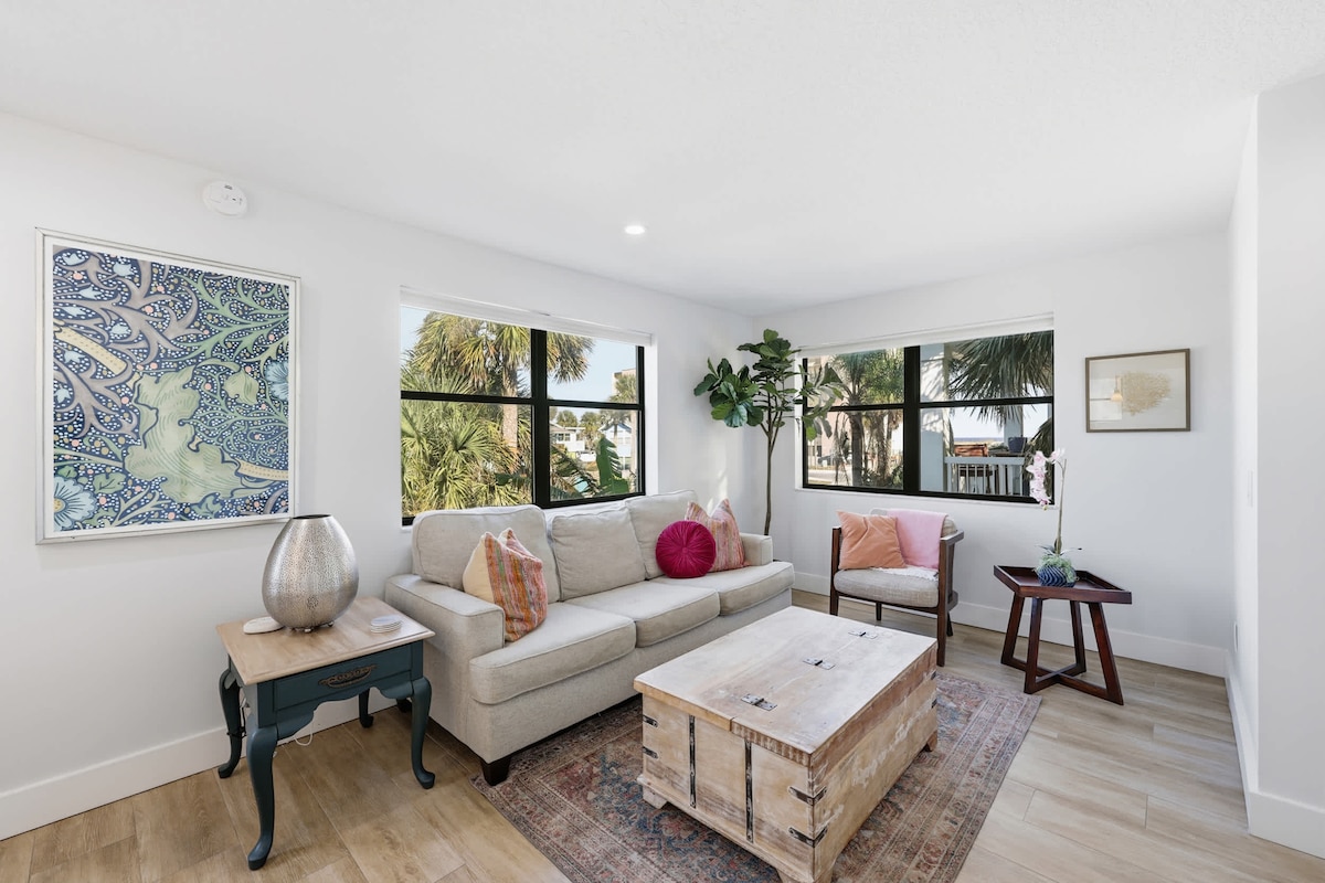 At the Tranquil Turtle, the ocean is on your doorstep! This condo is quiet and serene, but also located within walking distance of local eateries, bars and all the entertainment Jacksonville Beach has to offer. From coffee pods to bathrobes to beach chairs, everything is stocked so you can leave your cares behind upon check-in. We offer two beach-side private parking spaces, one covered and gated. A part of the proceeds from each stay goes to sea turtle conservation. Do good while on vacation!