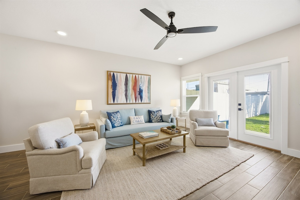 Bring the whole family to this amazing 4BR/ 3.5BA beach house just 50 yards from the beach and 5 blocks from Casa Marina. Huge master suite with ocean views. 2 ocean-view balconies. TV's in every bedroom. Big, open, fully-equipped kitchen. Spacious gathering room with oversized couch and a 75" TV. Outdoor shower. Two-car garage with beach chairs, toys, and beach cart. Guest reviews routinely say that the house is even better than pictured/ described. Must be 25 or older to rent.