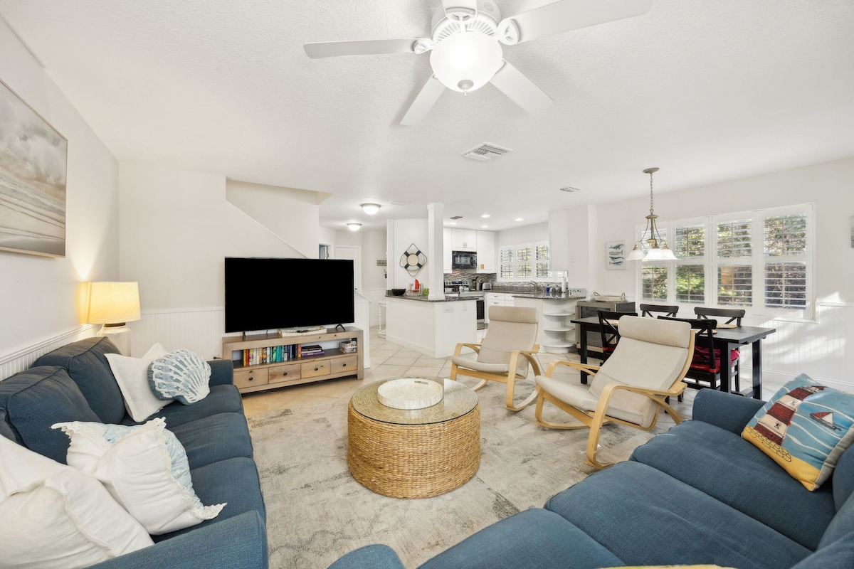 💎 Spacious coastal retreat near Jax stadium, airport,Amelia, shops/dining, beaches! Excellent mid/long term rental-Mayport naval base and near all PORTS. Watch dolphins,sunsets, fish/crab, kayaks,cornhole, firepit & grill. Chef’s kitchen, coffee/tea bar & breakfast starters. Comfortable beds, large gaming console,adventures nearby boat tours, horses, history. Locally managed Superhosts LOVE hospitality, well stocked & five-star guest favorite. Book Now or inquire on corporate longer.