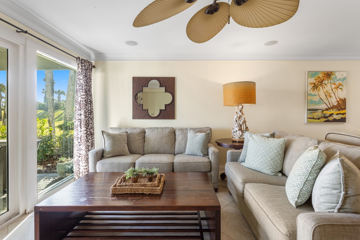 This fully renovated condo is in The Sandcastles complex within Amelia Island Plantation. It has 1 bedroom, 1 bath, a flex room that can be used as an office or a sleeping space with a king trundle bed. Single kayaks & gas golf cart are included to explore Drummond Park, Walker's Landing, Nature Center, mini golf, multiple shops and restaurants all within Amelia Island Plantation. The location is great, views are incredible and is a very comfortable space for couples, and small families!