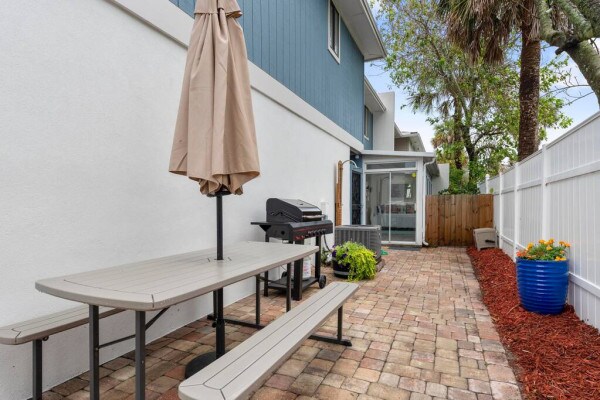 PRIVATE condo in a building of 4 independent condos. Now with carpet (not shown in pics). No shared spaces. 5 mins walk to the beach and 10 mins walk to Jax B downtown restaurants/bars! 10 mins drive to Mayo. This modern beach condo is exactly the getaway you need! UPSTAIRS unit completely renovated with luxurious, modern and chic decor. Fast wifi, and dedicated working space. Washer/dryer in unit. Outdoor shower and parking lot spaces. Please note this is no longer a pet friendly unit. Unit D