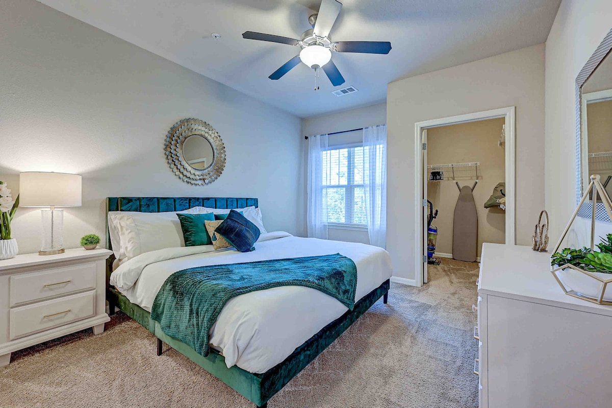 Our stunning 1BR/1BA apt, is centrally located; whether you're seeking medical expertise at the Mayo Clinic, sun-drenched days on beautiful beaches, or the vibrant retail, dining or nightlife of St. Johns Town Center, our luxe unit is at the center of it all. We've curated our home with your comfort and lifestyle in mind, enjoy a private/quiet atmosphere with modern amenities, luxe furnishing and bedding, fully equipped kitchen, dining Area and dedicated workspace with wifi.