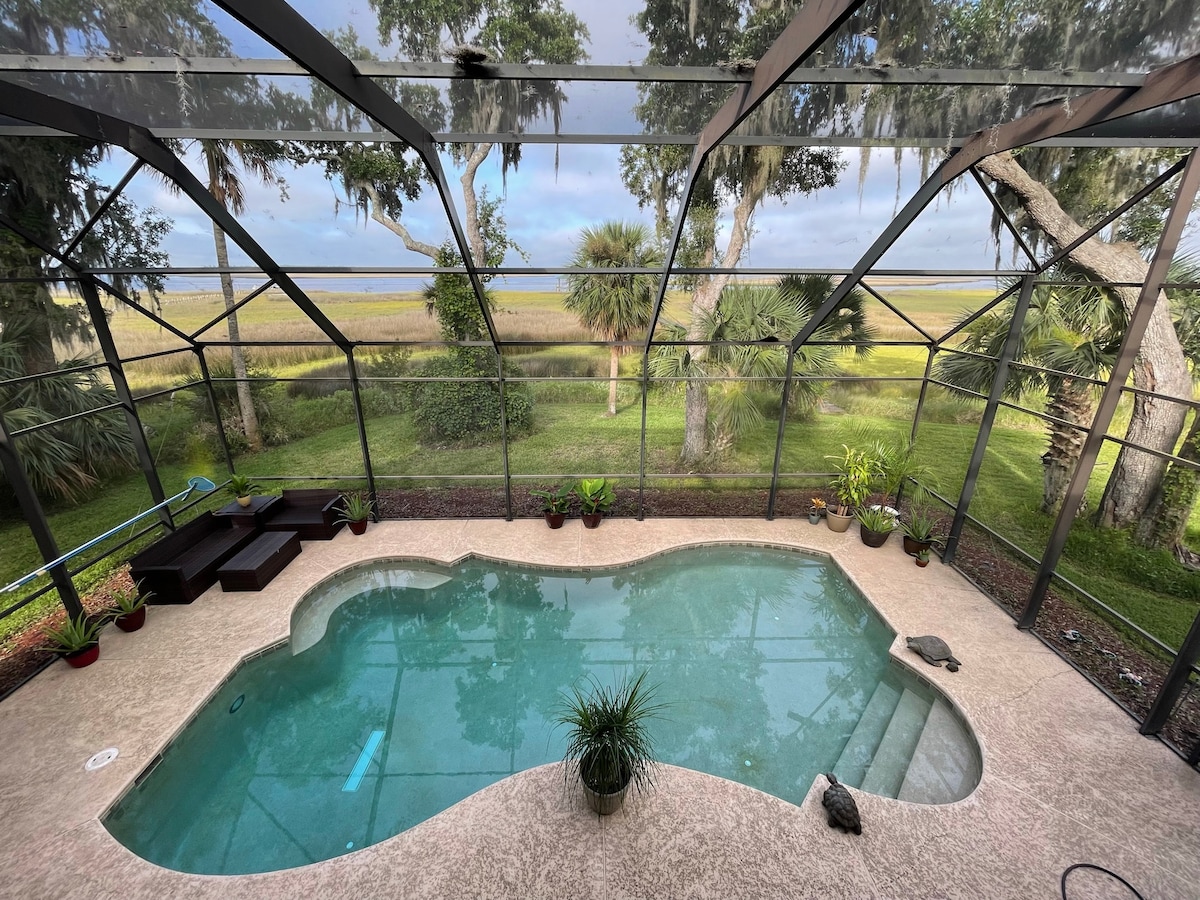 🌟 The Only Clear-Roof Enclosure around Heated Saltwater Pool in Jax! Experience the ultimate Florida vacation in our serene, open-concept home. Whether it’s a sudden afternoon shower or a breezy evening, our exclusive clear-roof pool enclosure means your swim is never canceled. Enjoy the sun and the view without the bugs or the rain! We are locating close to everything: - 2 minutes from shopping - 15 min to beaches - 10 min to Mayo Clinic - 15 min to Jaguars Stadium - 35 min to St. Augustine