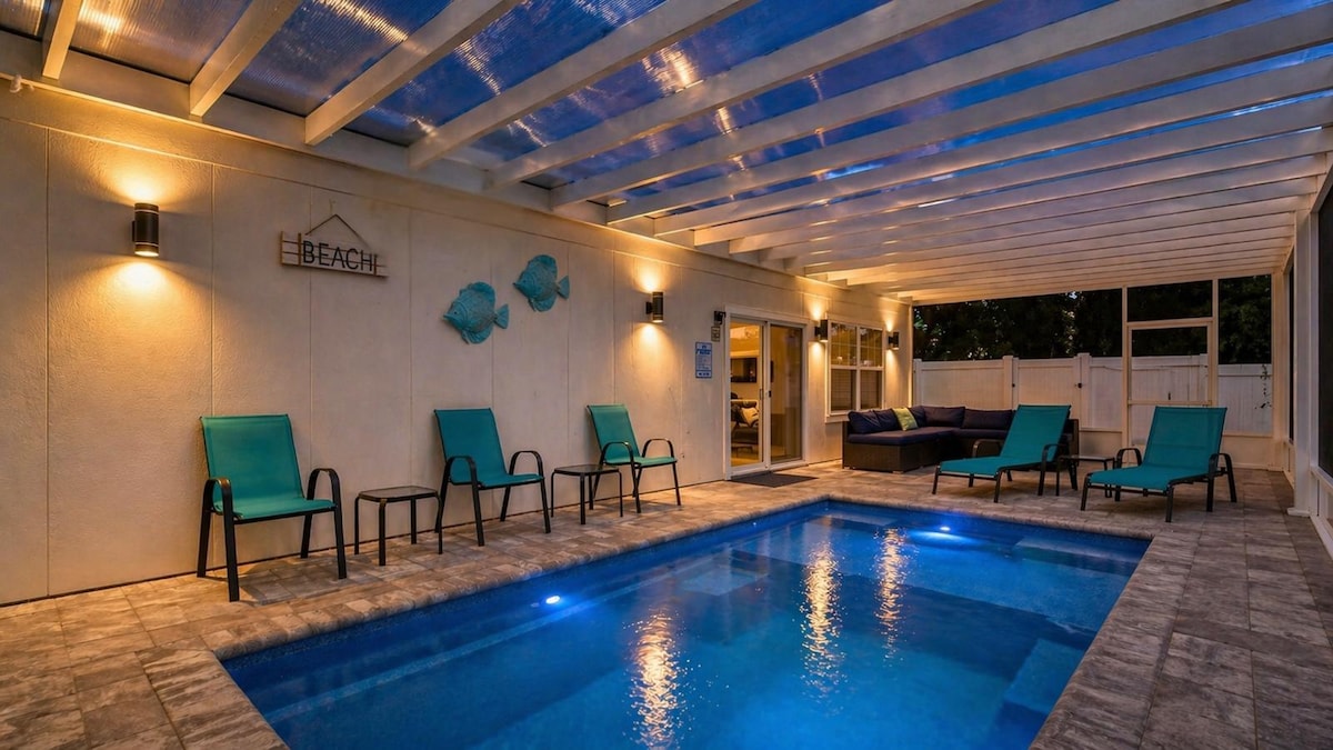 Imagine swimming under the stars or during a cozy rainy evening, year-round, in your heated saltwater pool beneath a glass roof. This is more than just a stay—it's an exclusive escape. A luxury oasis awaits in Jacksonville: serene comfort, a perfectly warm swim in any season, and a unique all-weather experience. Just minutes from Mayo Clinic and the beaches, you’ll enjoy a perfect balance of privacy, convenience, and year-round relaxation. Nearby Restaurants & shop - 2 min Beach & Mayo - 10 min