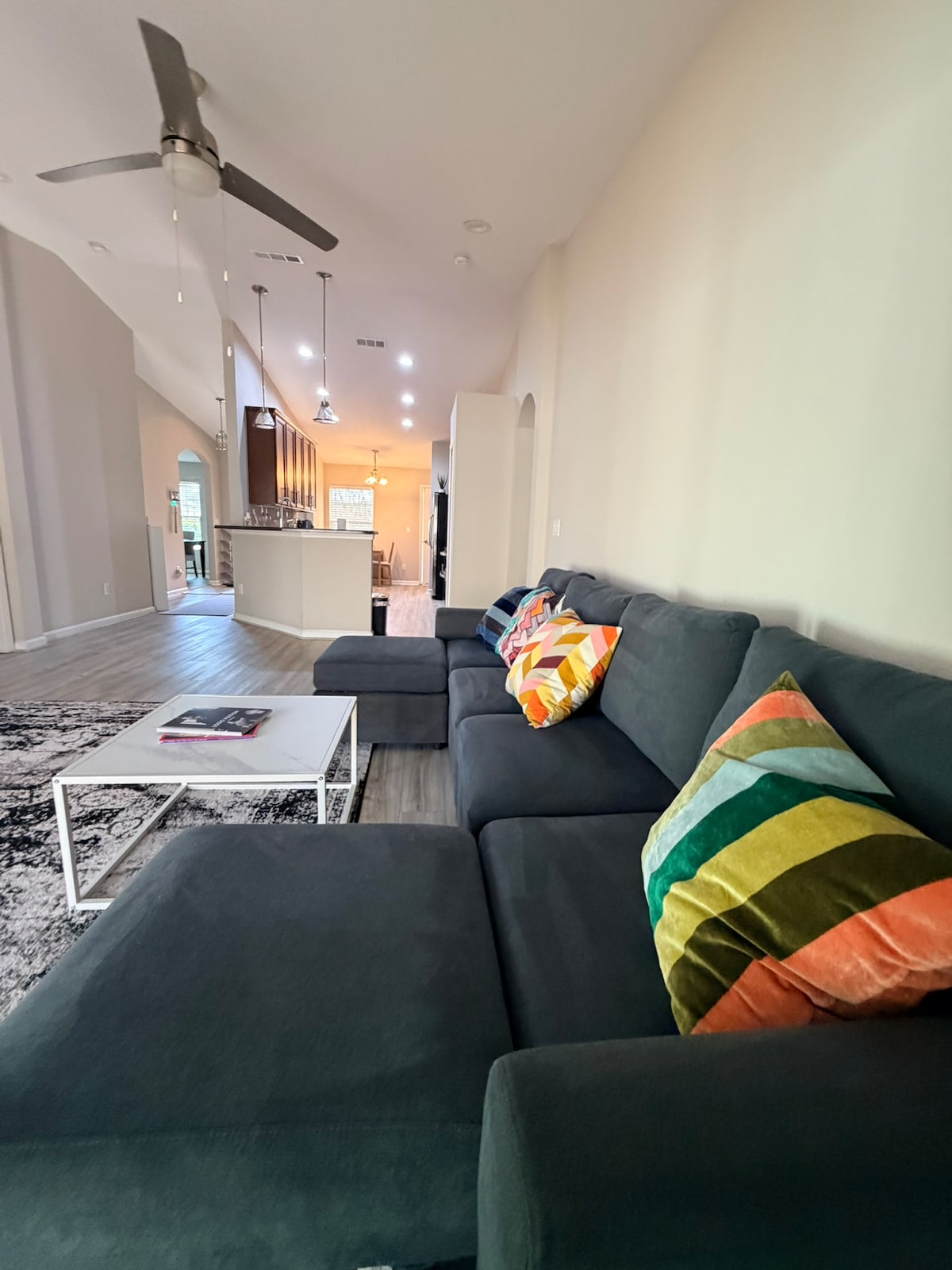 Experience relaxed luxury in this spacious 4BR retreat featuring a private solar-heated pool, elegant British-inspired décor, and soaring 10-ft ceilings. Designed for comfort and style, the home offers both refined touches and the space families need to unwind. Enjoy smart TVs in every room, fast Wi-Fi, a fenced backyard, hammock lounge, and poolside grill. Perfect for elevated escapes or family getaways. Pool is solar-heated; temperature varies with weather and may be cooler in colder months.